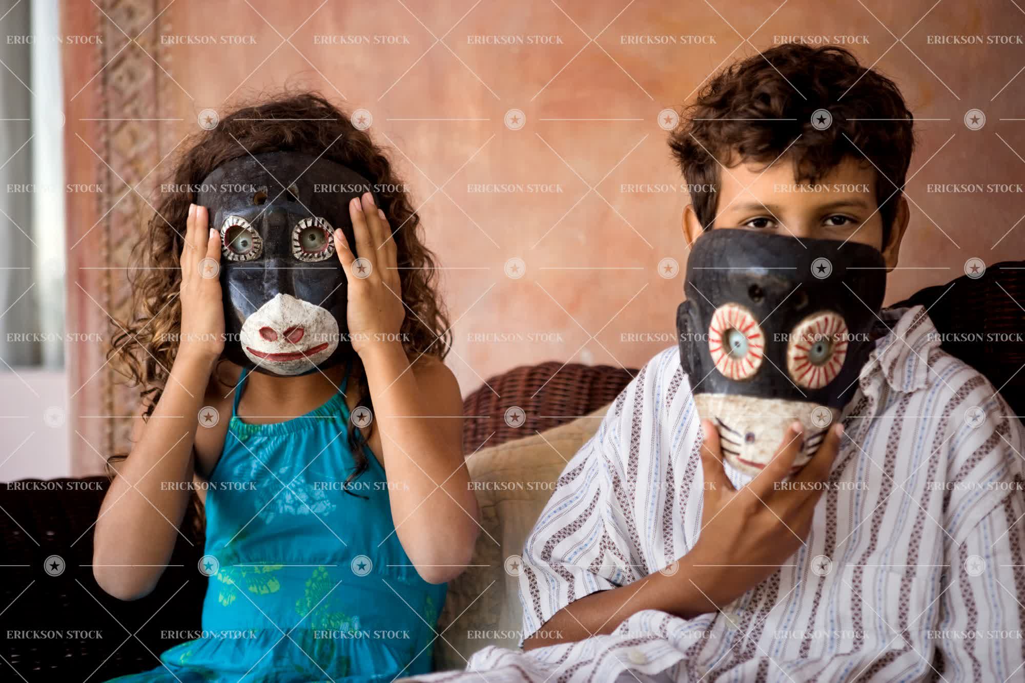 Tags boy, brother, brunette, casual clothes, child, comfort, couch, covered face, curl, day, elementary age, Eye contact, face covered, face obscured, female, Furniture, girl, girls, half length, horizontal, indigenous art, indoor, indoors, inside, kid, kids, look at camera, looking at camera, lounge suite, lounge suites, male, mask, masks, monkey mask, monkey masks, obscured face, play, Playful, Playing, pre-adolescent, pre-adolescents, Pre-teen, pre-teens, preteen, preteens, ringlet, ringlets, seat, seating, seats, selective focus, settee, sibling, siblings, sister, sisters, sit, sitting, Sofa, sofas, tribal art, tween, two people, waist up