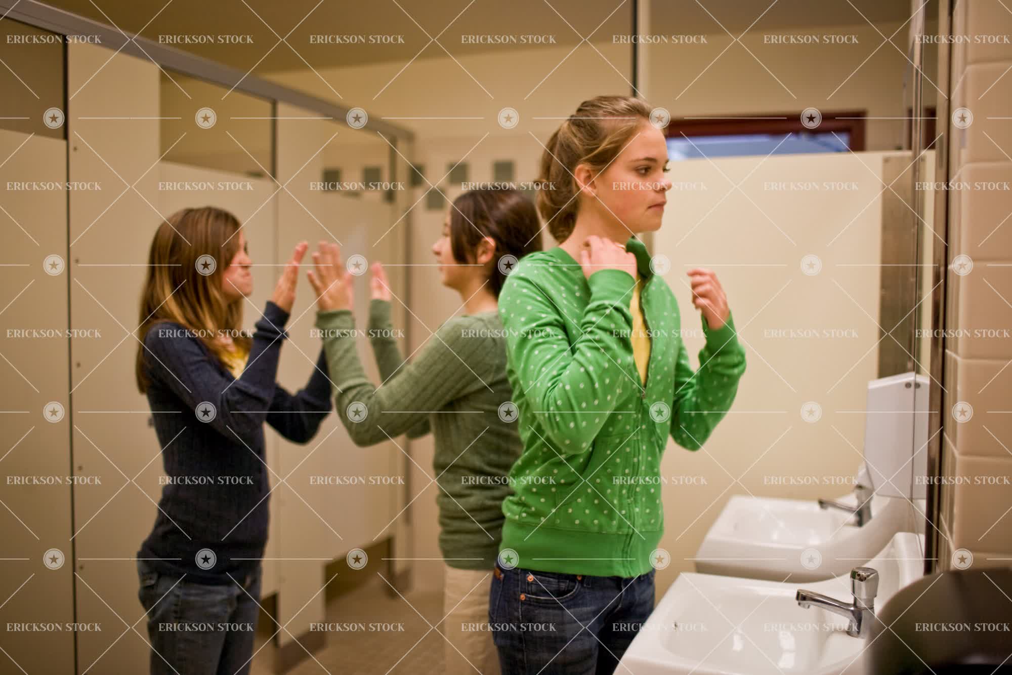 Tags bathroom, blue jeans, casual clothes, caucasian, checking reflection, child, city, clap, day, denim, door, doorframe, doorway, entrance, entry, entryway, entryways, female, females only, frame, friend, friends, friendship, girl, girls, girls only, girls toilet, girls toilets, hand game, hand games, horizontal, indoor, indoors, inside, jeans, kid, kids, leisure activities, leisure activity, looking in mirror, only children, only females, only girls, patty cake, people, play, Playful, Playing, portrait, Portraits, pre-adolescent, pre-adolescents, Pre-teen, pre-teens, preteen, preteens, restroom, restrooms, School, schools, selective focus, stand, standing, student, students, teenage girl, teenager, three quarter length, together, togetherness, toilet, toilets, tween, urban, urban scene, Urban scenes