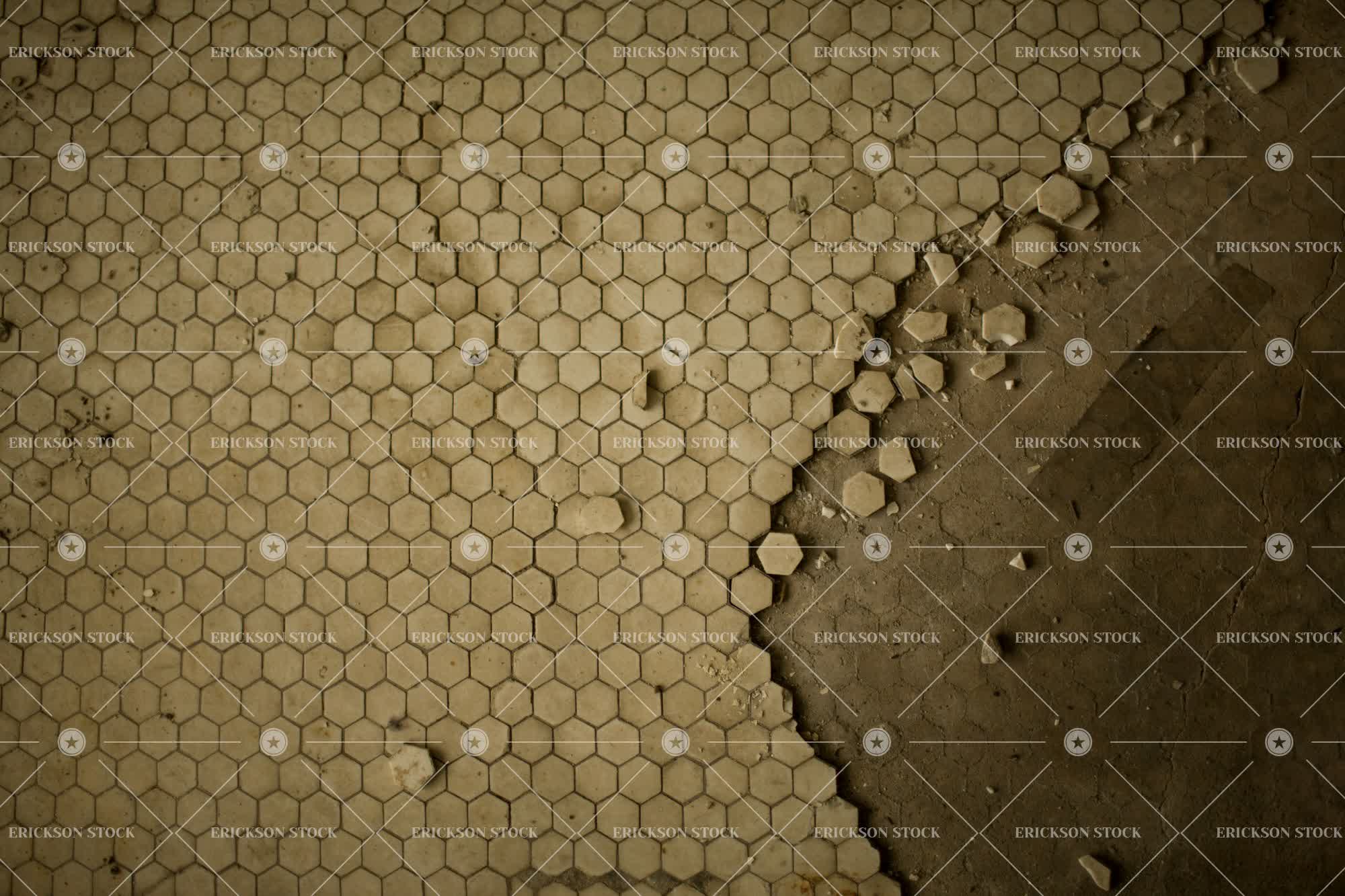 Tags bad condition, break, copy space, copy space left, copy space right, courtyard, damage, derelict, directly above, floor, floors, group, groups, hexagon, hexagon shape, hexagons, high angle, high angle view, horizontal, indoors, inside, many, multitude, negative space, negative space left, negative space right, neglect, neglected, nobody, old, pattern, patterns, run-down, tile, tiled, tiled floor, tiles, toned, toned image