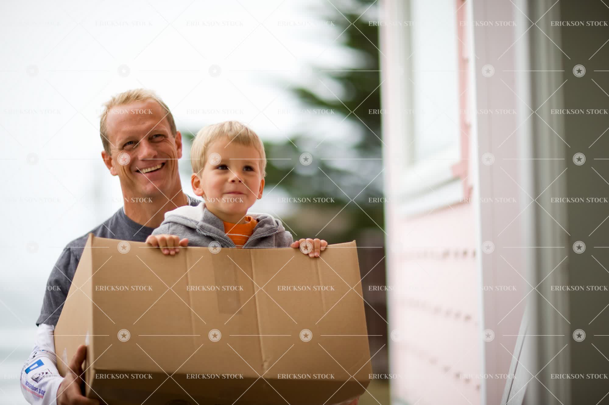 Tags begin, blond, box, boy, cardboard, cardboard box, casual clothes, caucasian, child, copy space, copy space right, day, elementary age, excitement, family, half length, horizontal, kid, kids, male, moving home, moving house, negative space, negative space right, new home, new house, Offspring, outdoors, outside, people, Playful, Playing, relocating, son, subject left, towhead, waist up