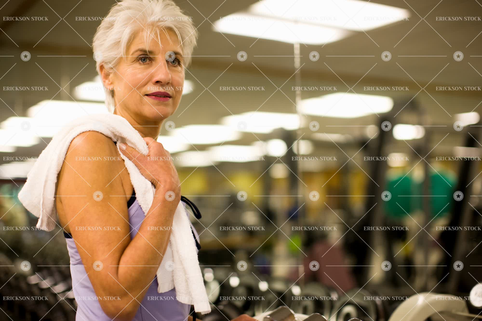 Tags adult, caucasian, copy space, copy space right, exercise, exercise clothing, exercise machine, exercise machines, exercises, exercising, female, fit, fitness, gray hair, grey hair, gym, gym clothes, gym clothing, gyms, half length, health, health club, health clubs, healthy, healthy lifestyle, hold, holding, horizontal, indoor, indoors, inside, lifestyle, lifestyles, look away, looking away, machine, machines, mature adult, mid adult, negative space, negative space right, one person, people, person, selective focus, senior adult, sports clothing, sports training, sportswear, subject left, towel, towels, training, waist up, wellbeing, woman, work out, working out, workout, workouts