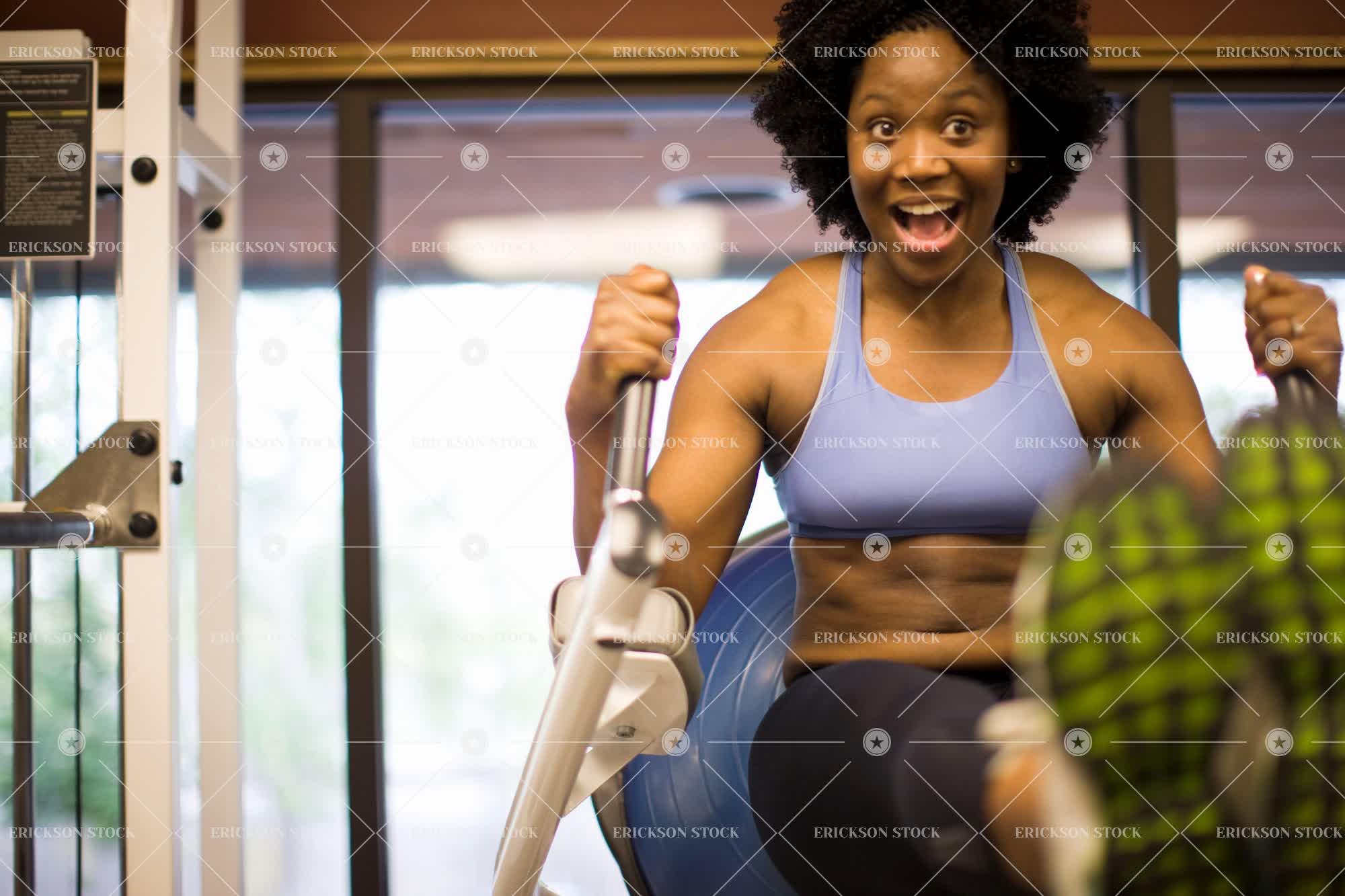 Tags adult, african american, casual clothes, day, enjoyment, enthusiasm, enthusiastic, exercise, exercises, exercising, female, full length, grin, grinning, gym, gym equipment, gyms, happiness, happy, horizontal, indoor, indoors, inside, mid adult, one person, people, person, selective focus, sit ups, sit-up, smile, smiles, smiling, vigor, woman, young adult