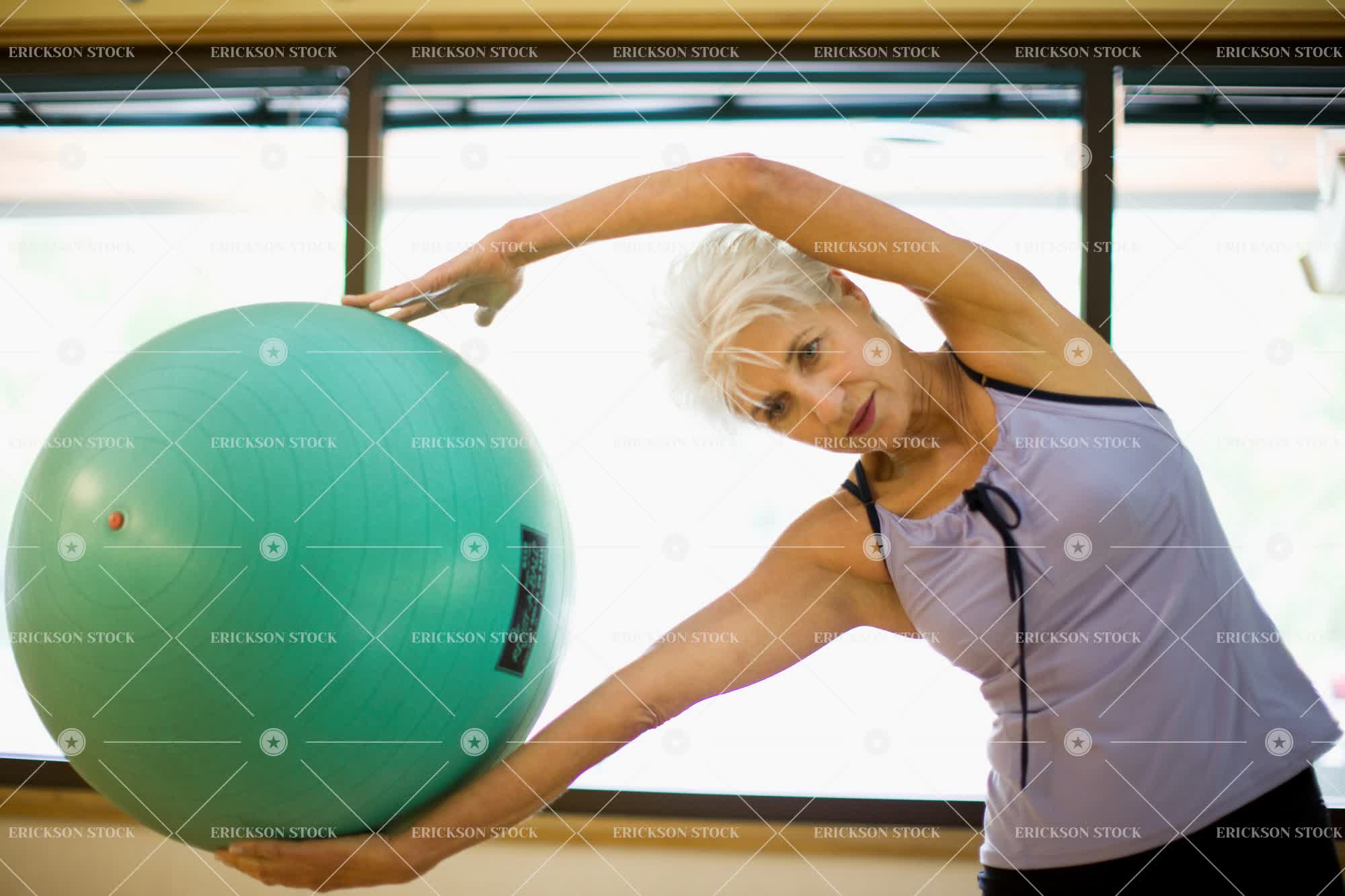 Tags ability, adult, architectural interior, bend, casual clothes, caucasian, day, equipment, exercise, exercise clothing, exercise equipment, exercises, exercising, female, fit, fitness, fitness ball, fitness balls, flexibility, flexible, gym, gymnasium, gyms, half length, health, healthy, healthy lifestyles, holding aloft, horizontal, indoor, indoors, inside, interior, lean, leaning, leans, lifestyle, lifestyles, mature adult, mid adult, one person, people, person, selective focus, senior adult, sideways bend, sports clothing, sportswear, standing, strength, stretch, stretching, swiss ball, swiss balls, waist up, wellbeing, woman, work out, working out, workout, workouts