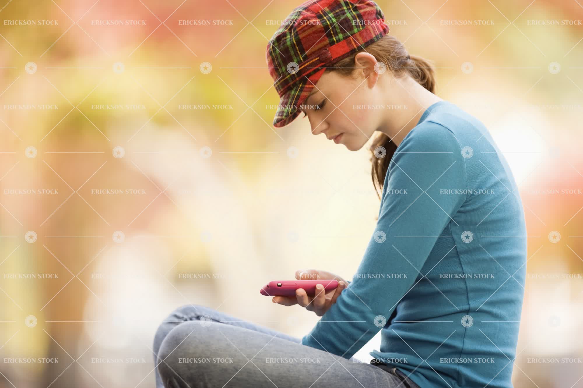 Tags adult, autumn, baseball cap, blue jeans, cap, casual clothes, caucasian, cell phone, communicate, connect, contemplate, copy space, copy space left, day, denim, fall, female, females only, focus on foreground, girl, girls, girls only, hat, hats, horizontal, jeans, look down, looking down, message, messaging, mobile phone, mobile phones, negative space, negative space left, one person, only children, only females, only girls, outdoor, outdoors, outside, pensive, people, person, portrait, Portraits, profile, serious, seriously, Side view, sitting, t-shirt, t-shirts, technology, tee shirt, tee shirts, teenage girl, teenager, text message, text messaging, texting, thinking, thoughtful, wireless technology, woman, young adult