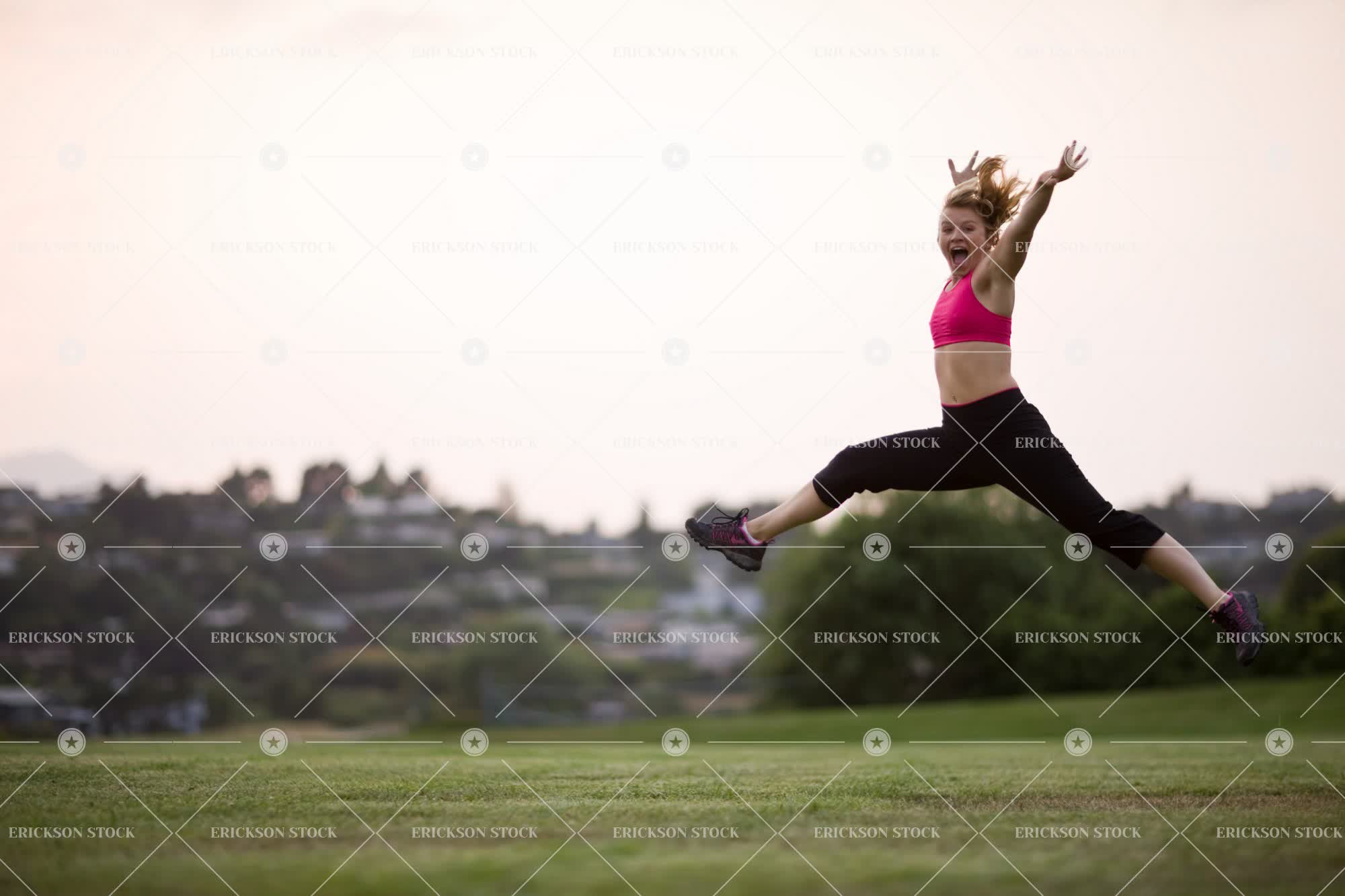 Tags adult, beautiful, blond, caucasian, cheerful, copy space, copy space bottom, copy space top, dusk, enjoyment, evening, excited, excitement, exercise, exercise clothing, exercising, exhilaration, Eye contact, female, fit, fitness, full length, garden, gardens, grass, happiness, happy, health, healthy, horizontal, jump, jumping, leap, leaping, lifestyle, lifestyles, look at camera, looking at camera, mid-air, mid-rift, midair, midriff, midrift, negative space, negative space bottom, negative space top, one person, outdoor, outdoors, outside, Park, parks, people, person, public park, public parks, public space, public spaces, smile, smiles, smiling, sports bra, sports bras, sports clothes, sports clothing, sundown, sunset, teenager, towhead, training, twilight, wellbeing, woman, working out, young adult