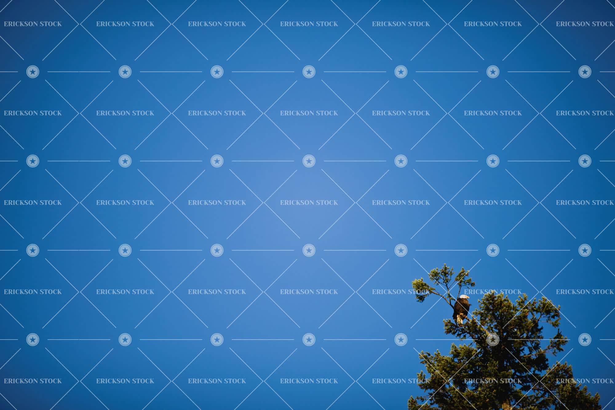 Blue sky and top of a tree with eagle perched in it