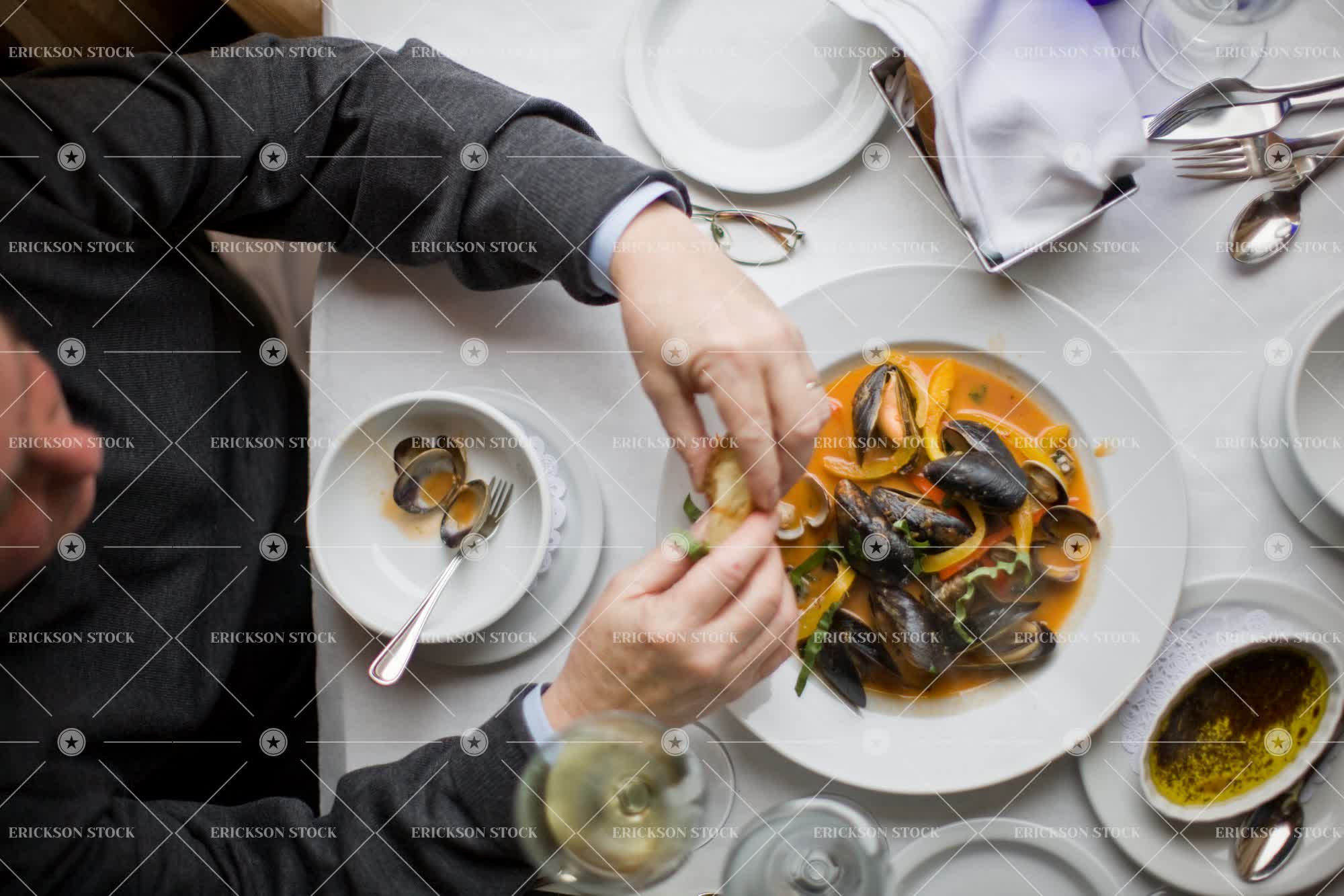Tags adult, casual clothes, chowder, eateries, eatery, eating, Food, Food and drink, head, head & shoulders, head and shoulders, head shot, headshot, high angle, high angle view, horizontal, indoor, indoors, inside, male, man, meal, meals, mussel, mussels, one person, person, Restaurant, restaurants, seafood, seafood chowder, selective focus, shellfish, shoulders, soup, soups