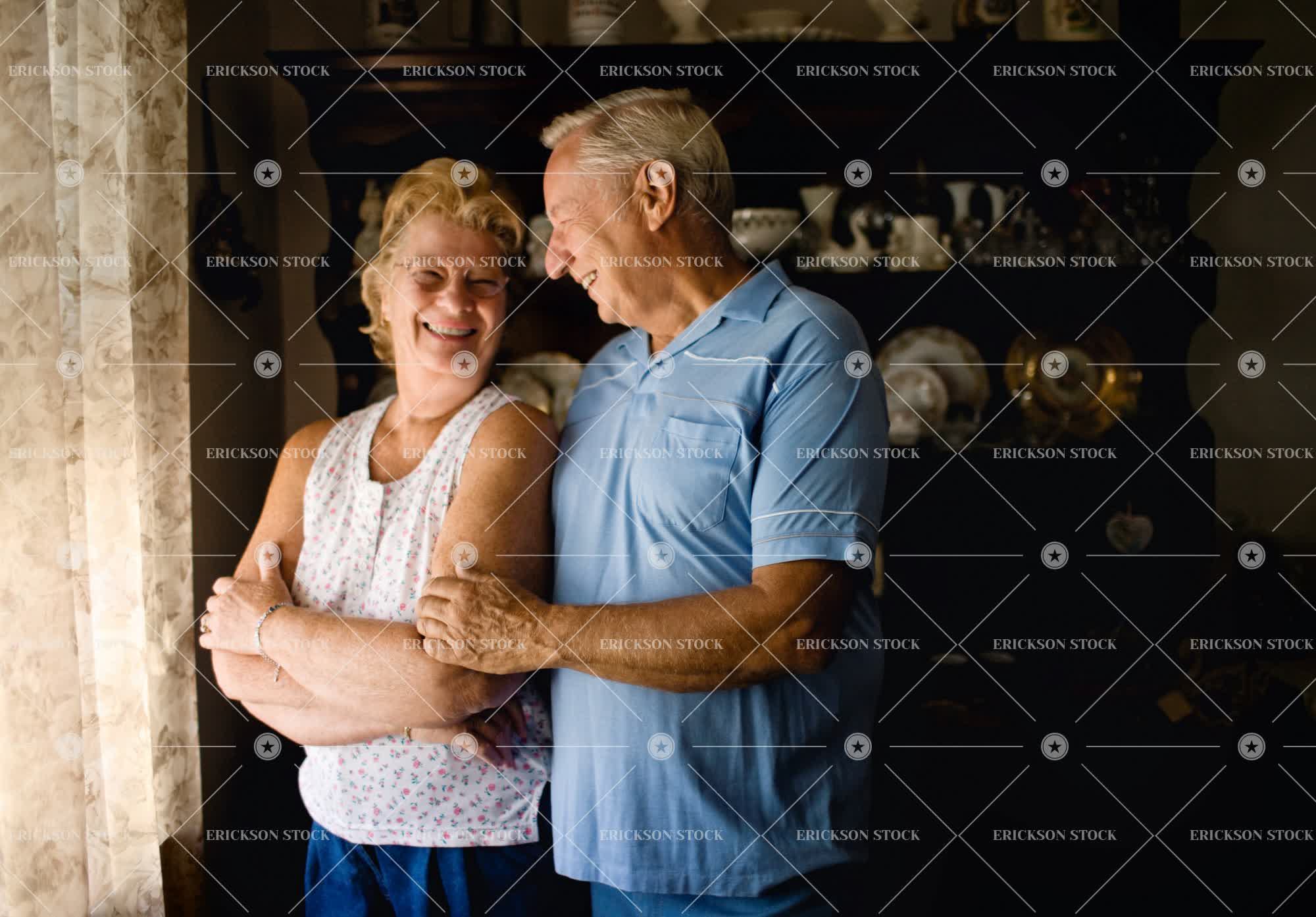 Senior couple in domestic living room.