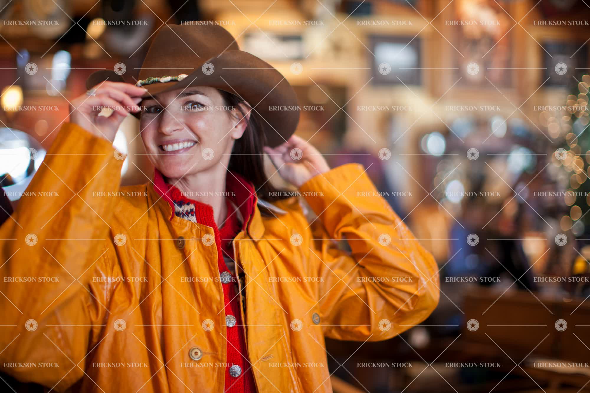 Tags adult, american, brunette, caucasian, cheerful, choose, cowboy hat, cowgirl, decide, delight, enjoyment, Eye contact, female, Fun, half length, happiness, happy, hat, hats, having fun, horizontal, indoor, indoors, inside, joy, joyful, leisure, leisure activities, leisure activity, long hair, look at camera, looking at camera, mid adult, one person, people, person, portrait, Portraits, recreation, recreational pursuit, recreational pursuits, retail, selective focus, shop, shops, smile, smiling, souvenir, souvenirs, store, stores, tourism, tourist, tourist destination, tourist destinations, tourists, travel, travel destination, travel destinations, tries, try, trying, trying on, waist up, warm clothes, warm clothing, woman, young adult