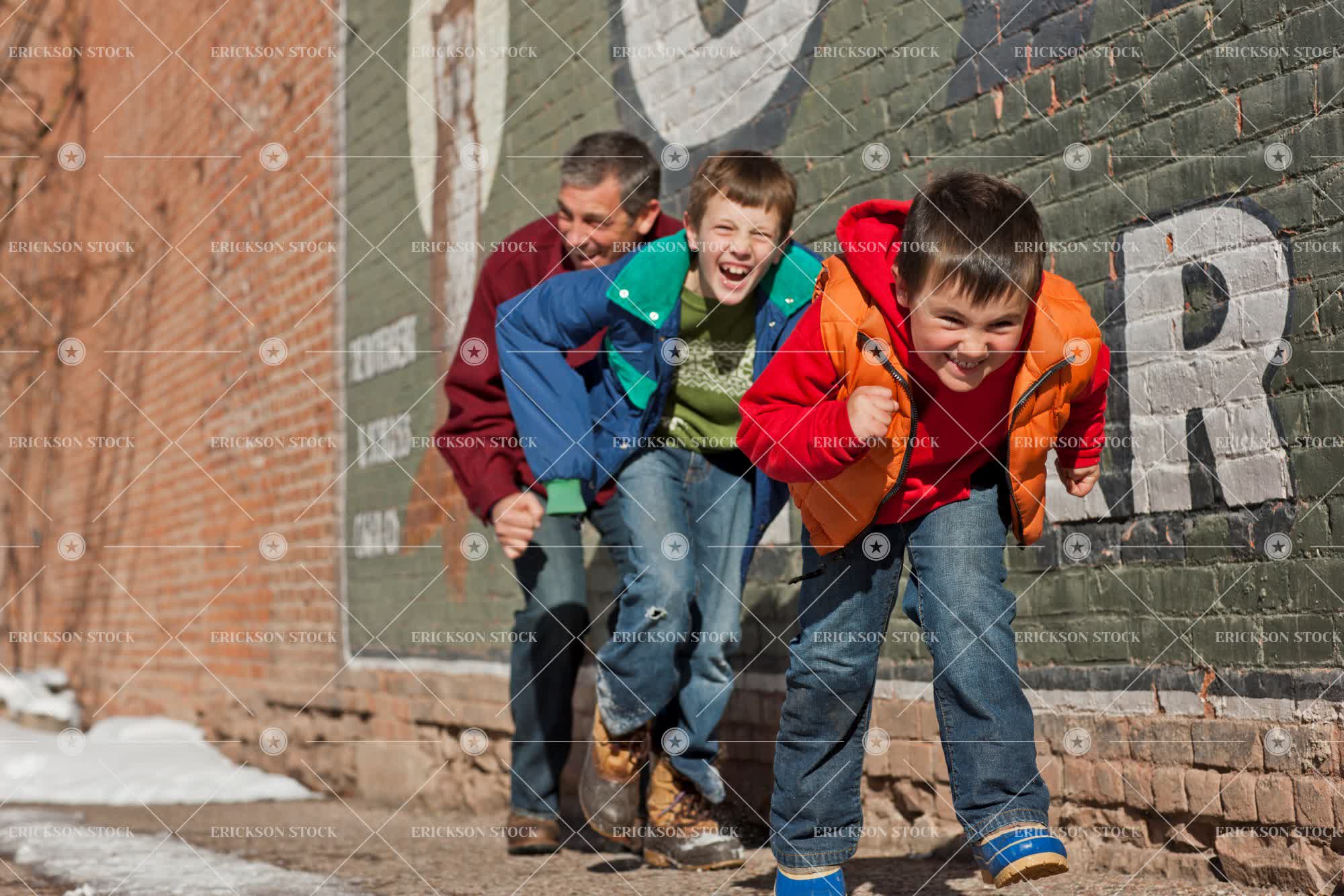 Tags adult, blue jeans, bond, boy, brick, brick wall, brother, brunette, building, button down shirt, casual clothes, caucasian, cheerful, child, chill, cold, collared shirt, day, delight, denim, elementary age, enjoyment, Eye contact, family, father, footpath, footpaths, full length, Fun, gray hair, grey hair, grin, grinning, grins, happiness, happy, having fun, hide, hides, hiding, horizontal, in a row, in rows, Jacket, jackets, jeans, joy, joyful, kid, kids, laughing, leisure, leisure activities, leisure activity, lined up, look at camera, looking at camera, male, man, mid adult, Mischief, mischievous, outdoor, outdoors, outside, parent, parents, path, paths, pavement, pavements, people, person, play, Playful, Playing, plays, protected, protection, recreation, recreational pursuit, recreational pursuits, row, rows, selective focus, shirt, shirts, short hair, sibling, siblings, sidewalk, sidewalks, ski holiday, ski jacket, ski jackets, ski wear, skiwear, smile, smiling, sneak, sneaking, sneaks, son, stand, standing, stands, together, togetherness, toothy smile, wall, walls, warm clothes, warm clothing, warmth