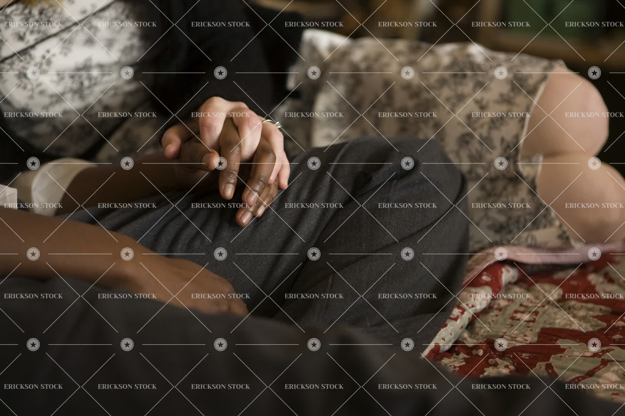 Hands of two women held together.