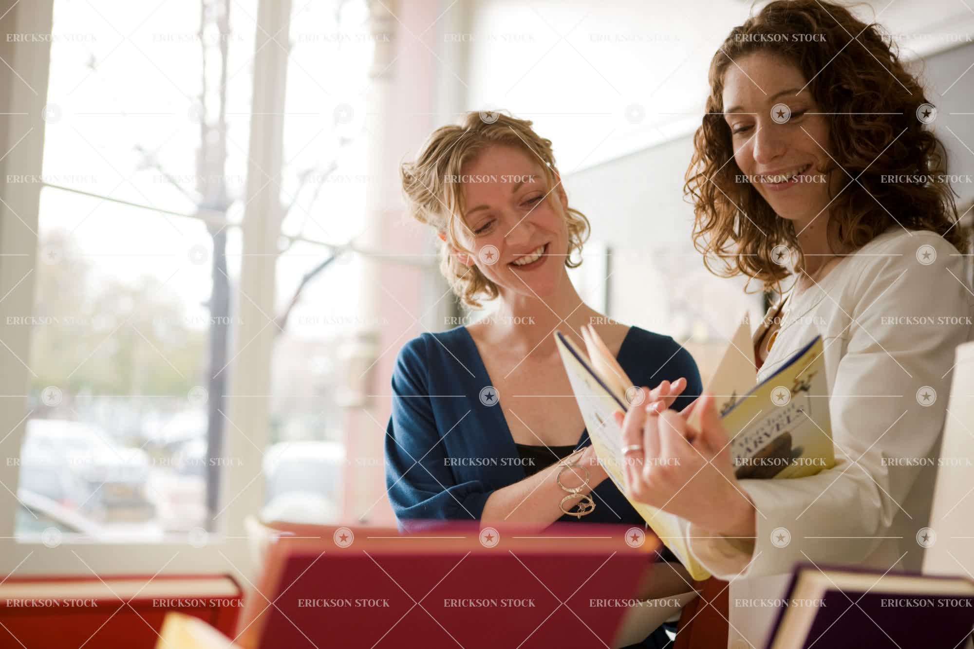 Women looking at book in store