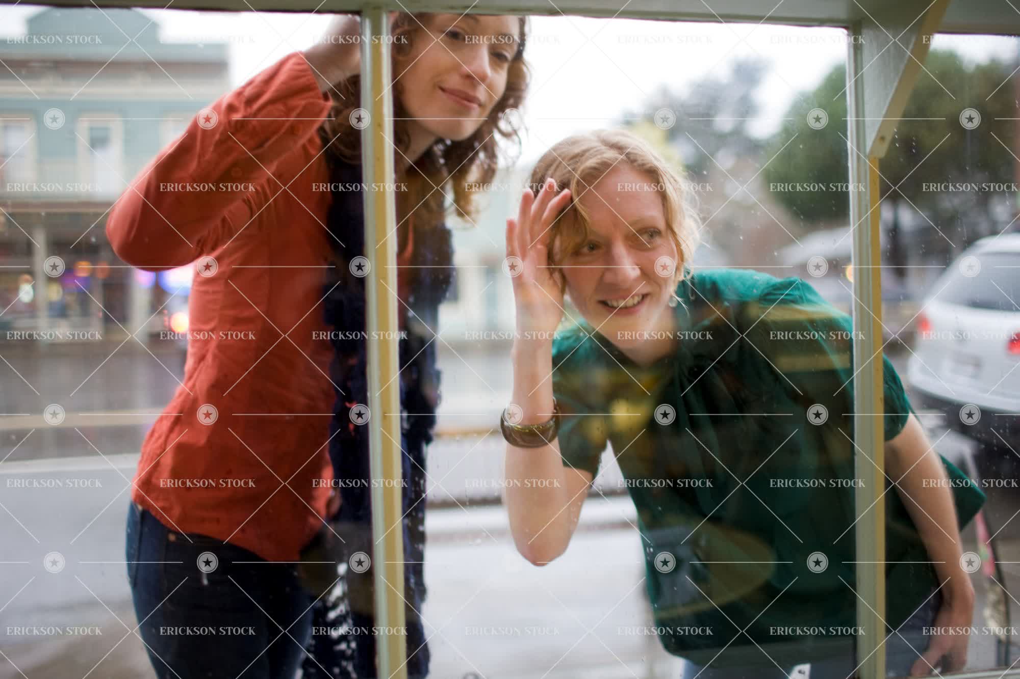 Women looking through cafe window
