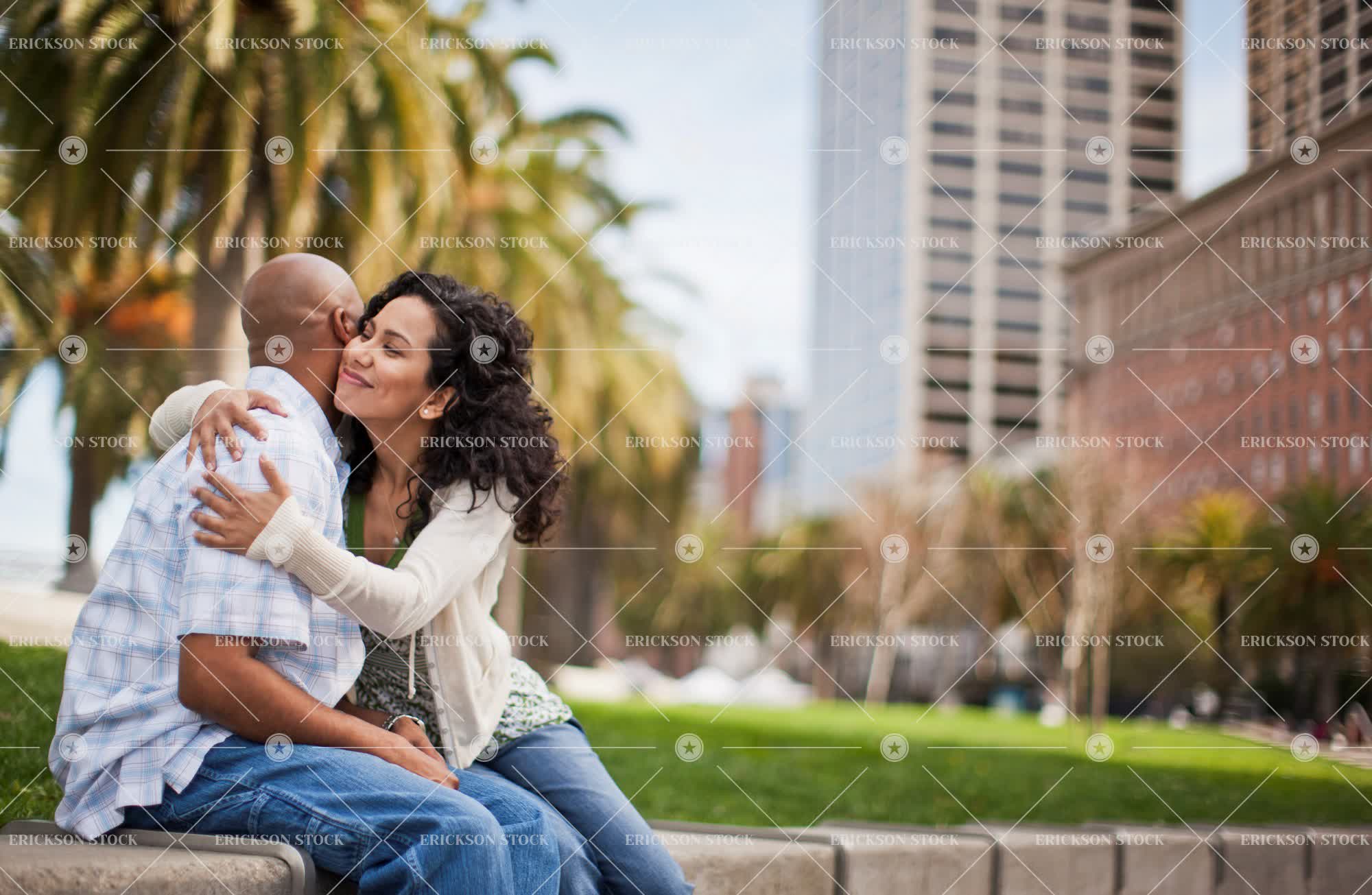 Tags adult, african american, architectural exterior, architecture, arm around, bald, blue jeans, bond, brunette, building, button down shirt, cardigan, carefree, casual clothes, checkered, cheerful, city, collared shirt, copy space, couple, curl, day, delight, denim, embrace, embracing, enjoyment, excited, excitement, exterior, female, Fun, garden, gardens, Growth, happiness, happy, having fun, heterosexual, heterosexual couple, heterosexual couples, horizontal, hug, hugging, Husband, husband and wife, husbands, jeans, joy, joyful, leisure, leisure activities, leisure activity, long hair, love, loving, male, man, marriage, married, mid adult, natural, nature, negative space, next to, outdoor, outdoors, outside, palm, palm tree, palm trees, palms, Park, parks, partner, people, person, plaid shirt, public park, public parks, public space, public spaces, recreation, recreational pursuit, recreational pursuits, relationship, relationships, ringlet, ringlets, romance, romantic, selective focus, shaved head, shirt, shirts, side by side, sit, sitting, smile, smiling, spouse, spouses, three quarter length, together, togetherness, Tree, trees, two people, urban, urban scene, wife, wives, woman