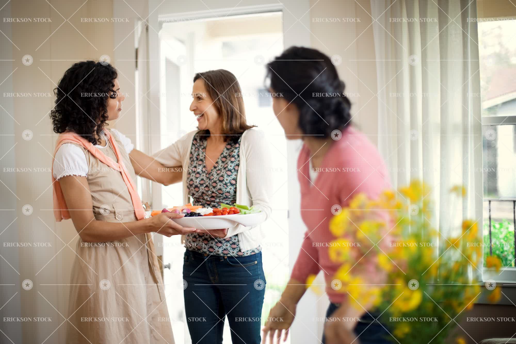 Tags adult, cheerful, delight, dish, door, doorway, encounter, encounters, enjoyment, entrance, entrances, entranceway, entranceways, female, Food, friend, friends, friendship, fruit, fruits, Fun, gathering, gatherings, greeting, greetings, happiness, happy, having fun, healthy, healthy eating, healthy food, hello, hi, home, home interior, home interiors, homes, horizontal, house, house interior, house interiors, houses, indoor, indoors, inside, interior, interiors, joy, joyful, leisure, leisure activities, leisure activity, mature adult, meeting, meetings, mid adult, mixed race, mixed race person, people, person, recreation, recreational pursuit, recreational pursuits, selective focus, smile, smiling, social gathering, social gatherings, social life, socialising, socializing, three quarter length, together, togetherness, vege, veges, vegetable, vegetables, woman, young adult