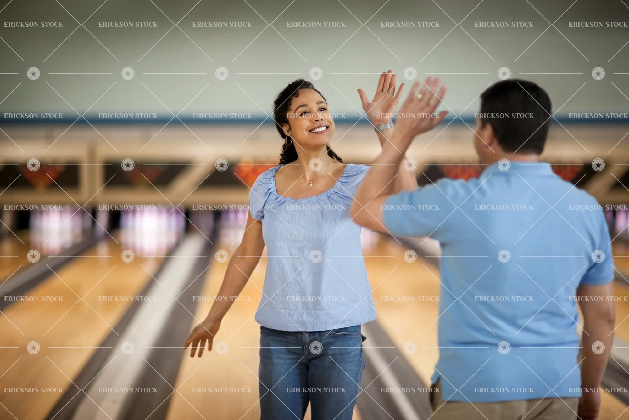 Tags achievement, adult, african american, blouse, blue jeans, bond, bowling, bowling alley, brunette, casual clothes, caucasian, cheerful, curl, delight, denim, enjoyment, face to face, facing each other, female, friend, friends, friendship, Fun, gesture, Gesturing, happiness, happy, having fun, high five, high fives, high fiving, hobbies, hobby, horizontal, indoor, indoors, inside, jeans, joy, joyful, leisure, leisure activities, leisure activity, looking at each other, male, man, mature adult, mid adult, people, person, play, Playful, Playing, plays, recreation, recreational pursuit, recreational pursuits, ringlet, ringlets, selective focus, smile, smiling, sport, Sports, success, successful, three quarter length, together, togetherness, two people, woman, young adult