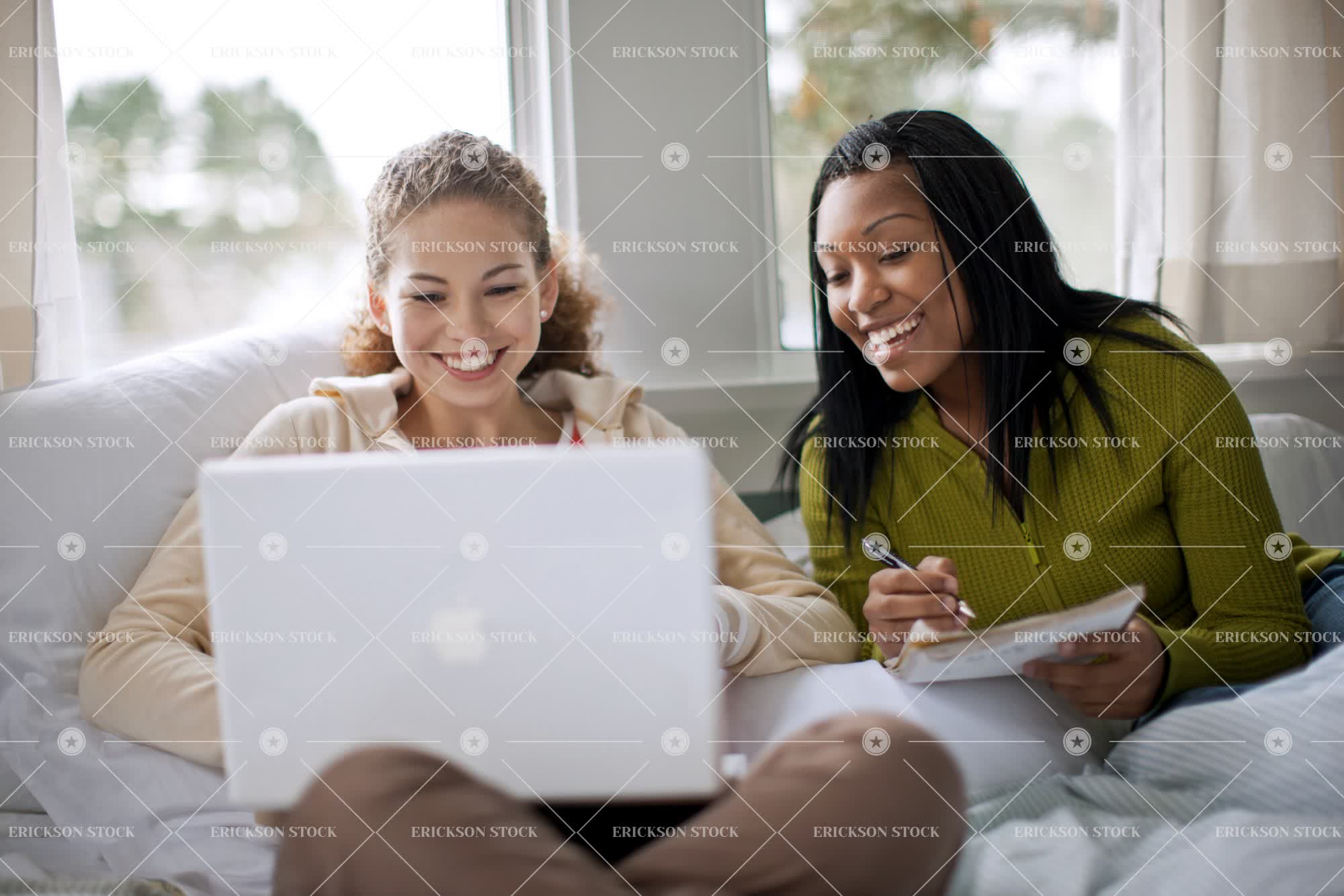 Tags african american, bed, bedroom, black hair, braids, brunette, casual clothes, caucasian, cheerful, communicate, computer, connect, delight, e-mail, e-mailing, Education, email, emailing, enjoyment, female, friend, friends, friendship, Fun, girl, girls, hair braids, happiness, happy, having fun, home interior, home interiors, homework, horizontal, indoor, indoors, inside, internet, joy, joyful, laptop, laptop computer, laptop computers, laptops, learning, leisure, leisure activities, leisure activity, note, notebook, notebooks, notes, noting, people, person, recreation, recreational pursuit, recreational pursuits, selective focus, sit, sitting, smile, smiling, student, students, studying, take note, taking notes, technology, teenage girl, teenager, three quarter length, together, togetherness, two people, wireless, wireless technology, write, writing