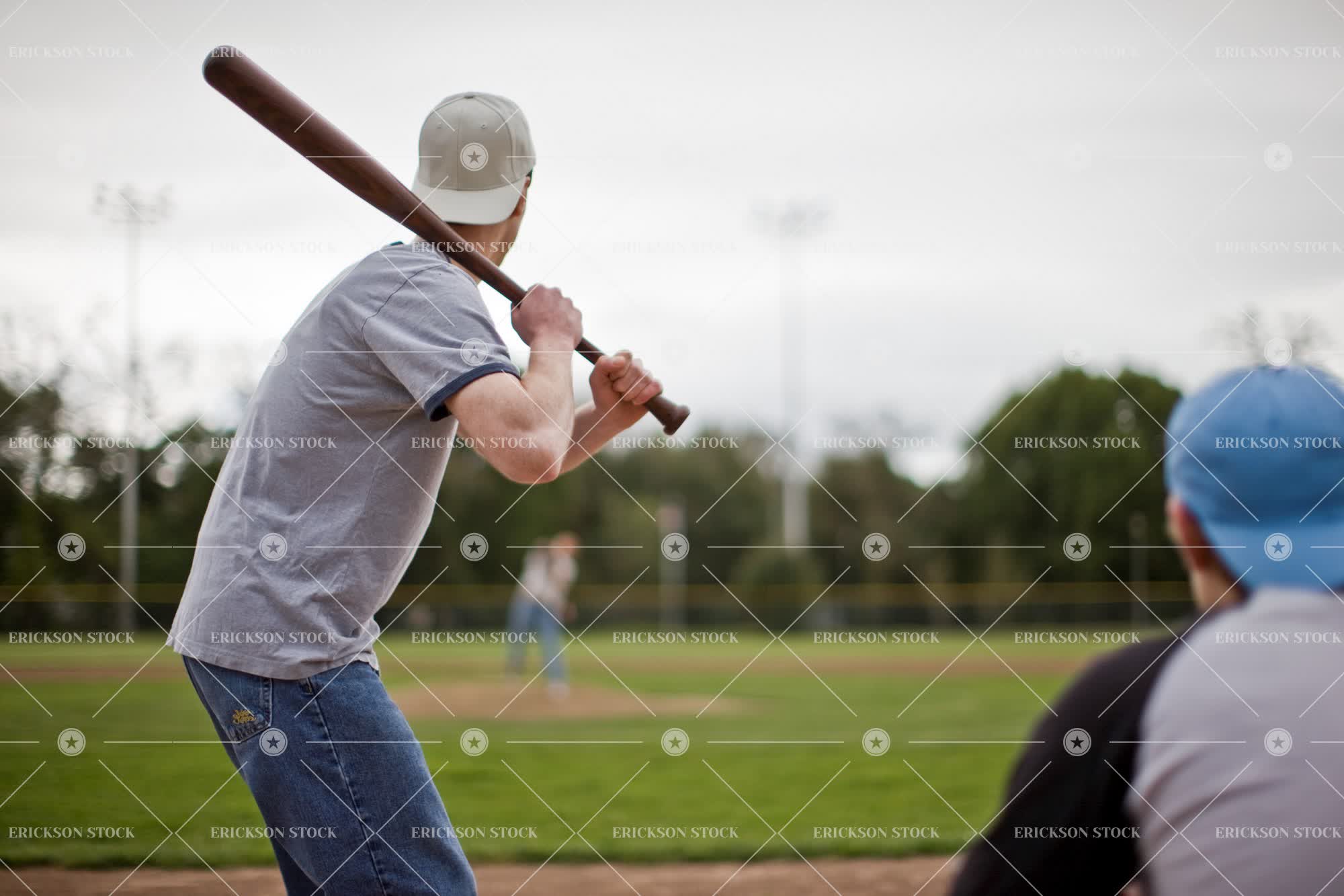 Tags action, adult, baseball, baseball bat, baseball cap, baseball field, cap, caucasian, competition, concentrate, contest, cropped, day, equipment, game, games, hat, hats, horizontal, leisure, leisure activities, leisure activity, leisurely, male, man, outdoor, outdoors, outside, part of, people, person, pitch, playing field, playing fields, profile, recreation, recreational pursuit, recreational pursuits, selective focus, Side view, softball, softball bat, softball bats, softball field, softball fields, softball pitch, softball pitches, sport, sport equipment, sport field, sport fields, sporting equipment, Sports, Sports equipment, three quarter length, young adult
