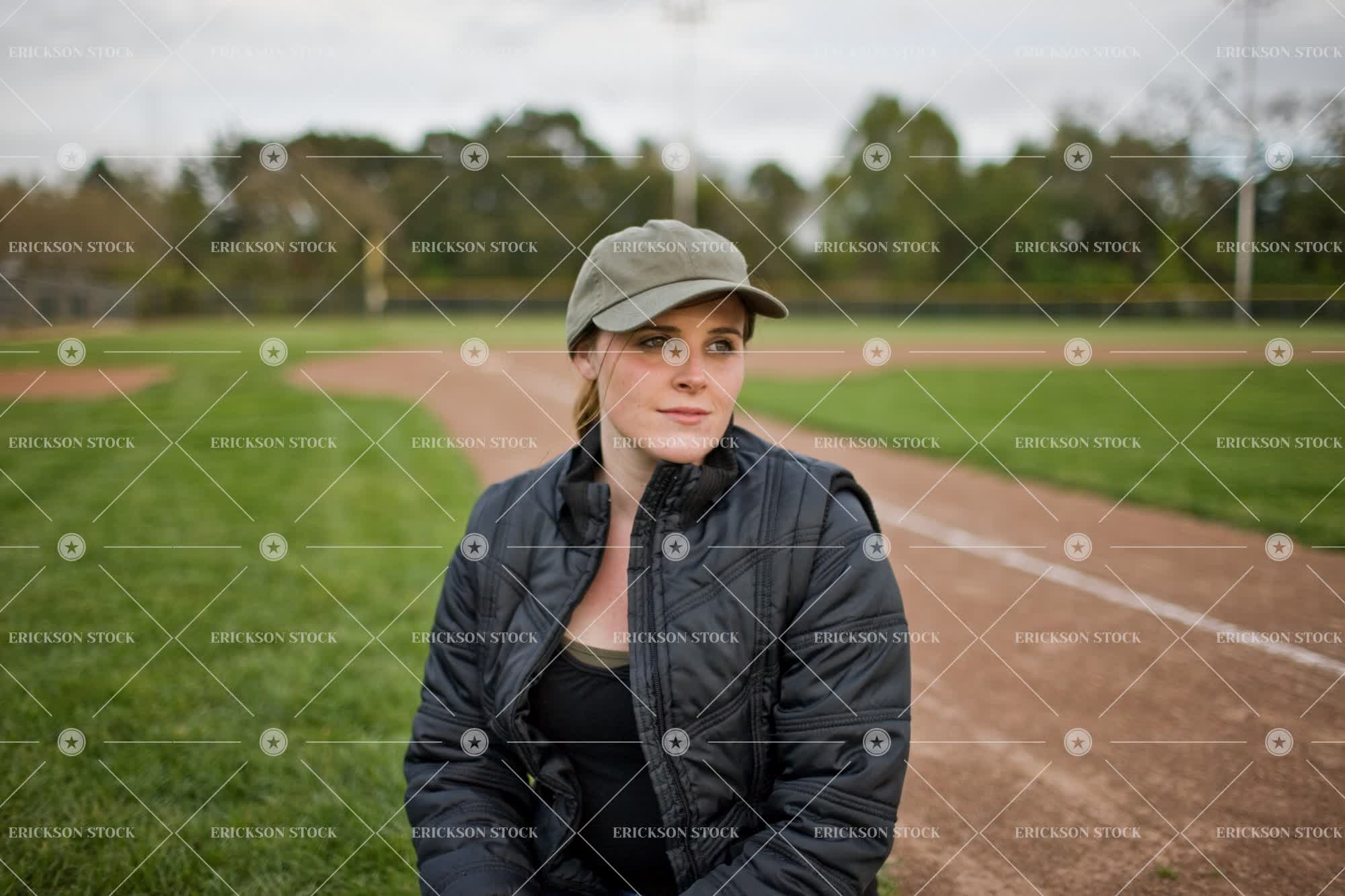 Tags adult, baseball, baseball cap, baseball field, cap, caucasian, copy space, copy space left, copy space right, day, equipment, female, game, games, half length, hat, hats, horizontal, Jacket, jackets, leisure, leisure activities, leisure activity, leisurely, look away, looking away, negative space, negative space left, negative space right, one person, outdoor, outdoors, outside, people, person, playing field, playing fields, recreation, recreational pursuit, recreational pursuits, Relaxation, relaxed, relaxing, selective focus, sit, sitting, softball, softball field, softball fields, softball pitch, softball pitches, sport, sport equipment, sport field, sport fields, sporting equipment, Sports, Sports equipment, teenager, waist up, woman, young adult