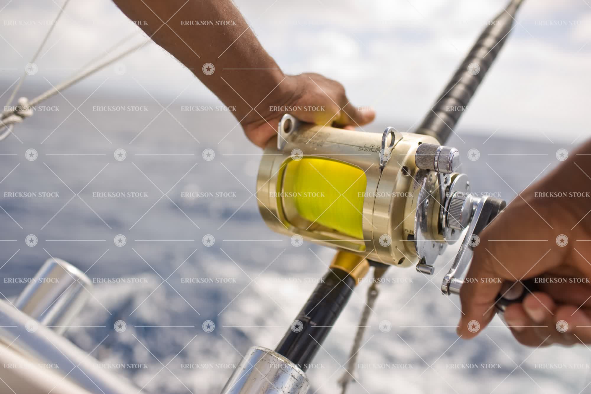 Tags adult, boat, body part, close up, day, deck, fishing, fishing boat, fishing boats, fishing rod, fishing rods, fishing trip, fishing trips, hand, Hands, holiday, holidays, horizontal, human hand, human hands, launch, launches, leisure, leisure activities, leisure activity, male, man, nautical vessel, nautical vessels, ocean, oceans, one person, outdoor, outdoors, outside, part of, people, person, recreation, recreational boat, recreational boats, recreational fishing boat, recreational fishing boats, recreational pursuit, recreational pursuits, reeling, reeling in, Relaxation, relaxed, relaxing, sea, seas, selective focus, sports fishing boat, sports fishing boats, Summer, summery, transport, Transportation, Vacation, vacations, warm, warmth, water