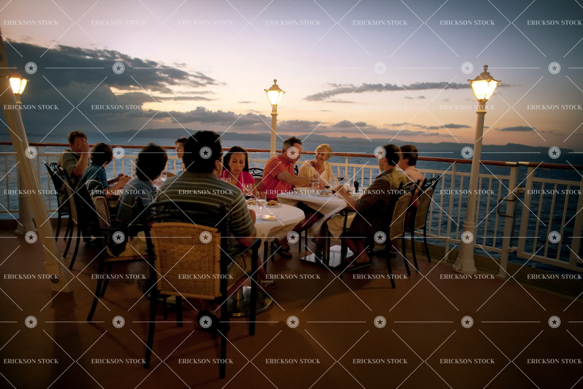 Tags adventure, boat, casual clothes, caucasian, chair, cruise, dinner, dinner party, dish, dusk, evening, Food, friend, friends, friendship, group, holiday, holidays, horizontal, illuminated, illumination, journey, journeys, lamp, lamps, large group of people, Light, lights, meal, meals, nautical vessel, nautical vessels, night, outdoor, outdoors, outside, parties, party, people, person, seat, seats, selective focus, ship, ships, social gathering, socializing, sundown, sunset, table, Tables, tourist destination, tourist destinations, transport, Transportation, travel, travel destination, travel destinations, travelling, twilight, Vacation, vacations, voyage, voyages