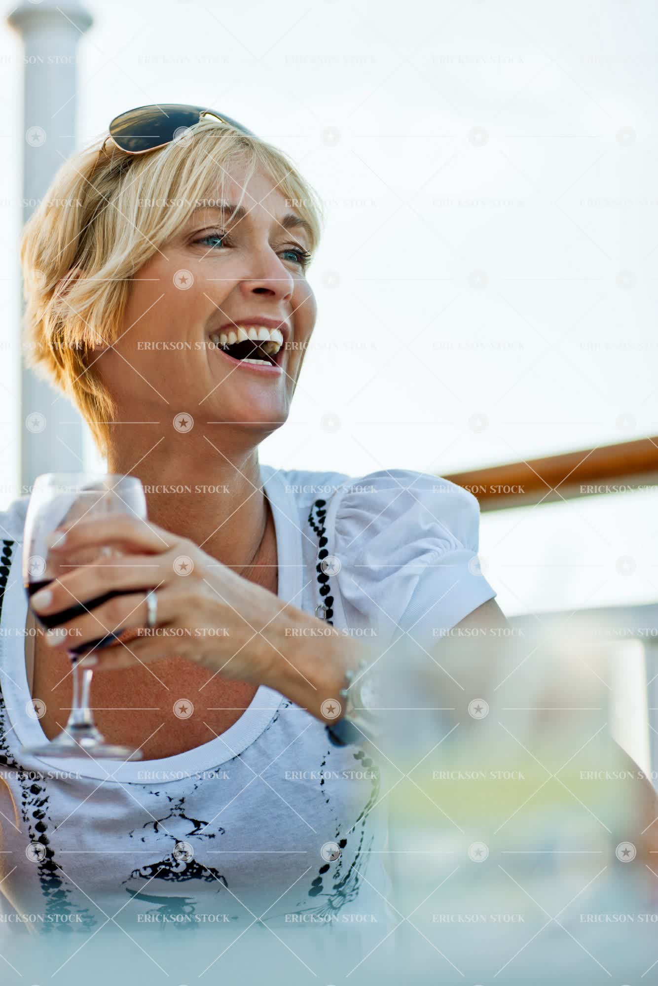 Tags adult, balcony, blond, casual clothes, cheerful, day, deck, delight, drink, enjoyment, female, grin, grinning, grins, half length, hand raised, hands raised, happiness, happy, joy, joyful, laughing, mid adult, non-urban, one person, outdoor, outdoors, outside, people, person, ring, selective focus, shades, shirt, shirts, smile, smiling, sunglasses, toothy smile, towhead, vertical, waist up, wine, wine glass, wine glasses, wineglass, wineglasses, woman