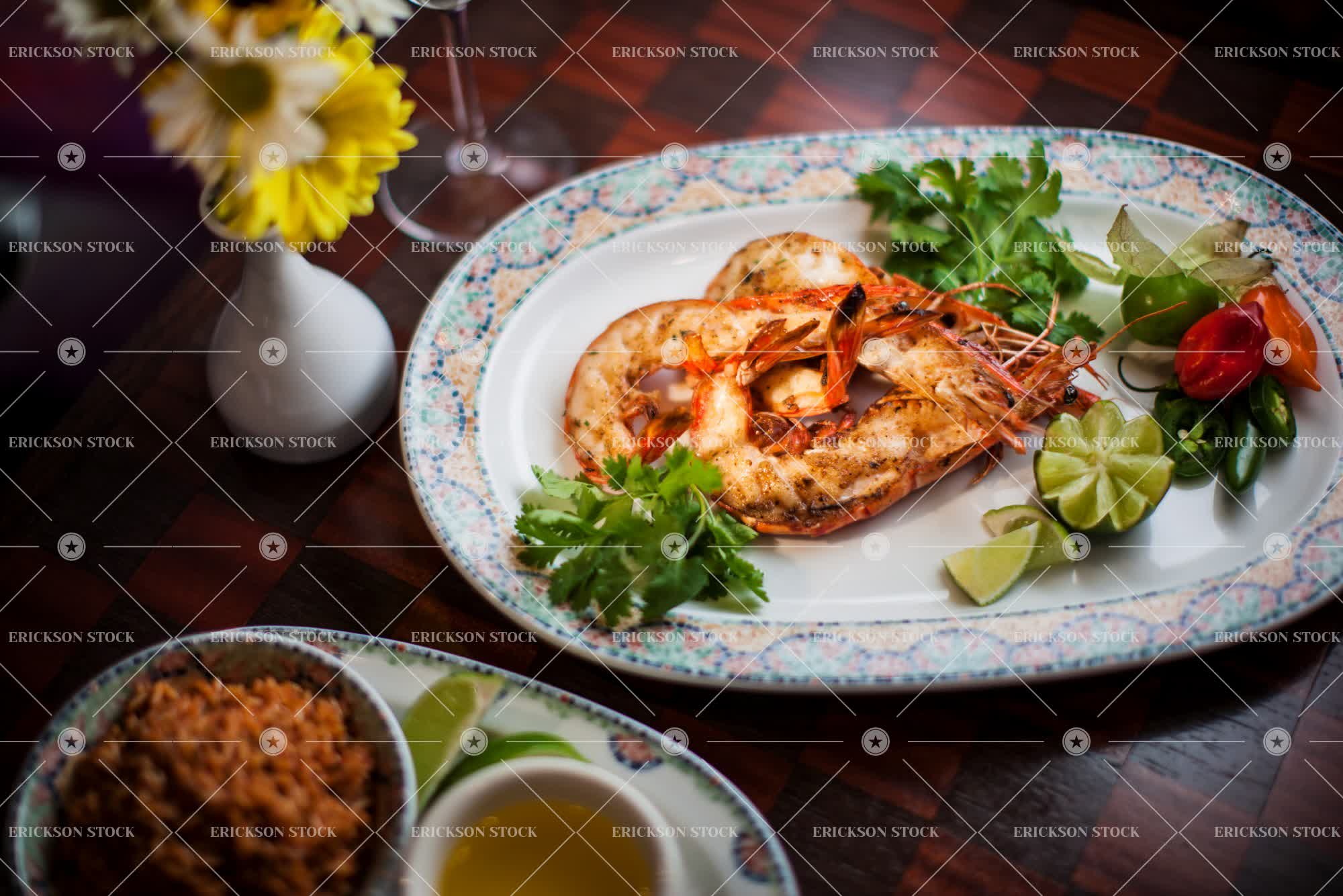 Tags citrus, day, eateries, eatery, flower, flowers, Food, Food and drink, fruit, fruits, garnish, gourmet, Growth, high angle, high angle view, horizontal, indoor, indoors, inside, lime, limes, meal, meals, meat, meats, nature, nobody, plant, plate, plates, prawn, prawns, Restaurant, restaurants, seafood, selective focus, shellfish, vegetable, vegetables, veggie, veggies