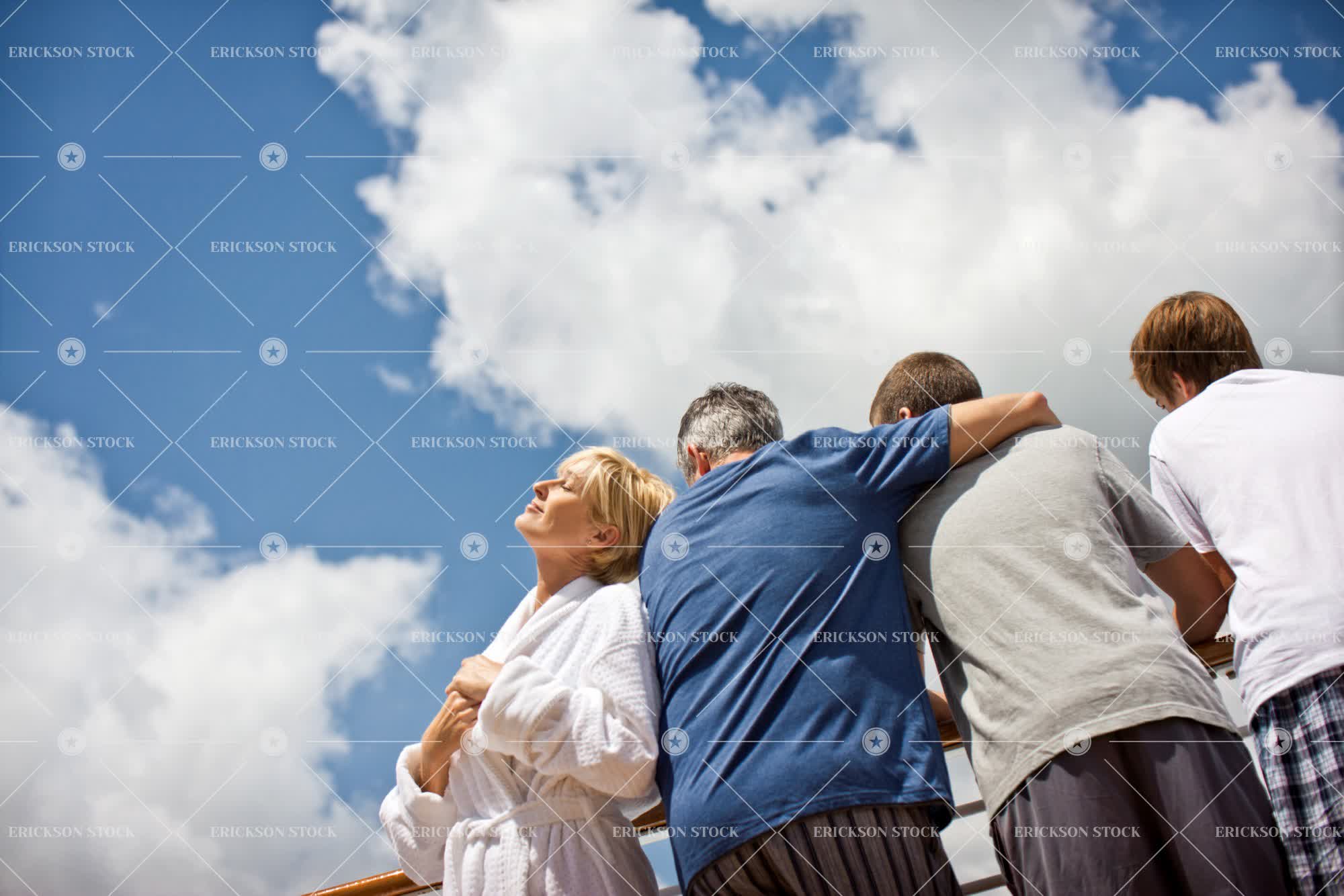 Tags adult, adventure, bathrobe, blond, boy, brother, casual clothes, caucasian, child, closed eyes, cloud, couple, cruise, day, dressing gown, eyes closed, family, father, female, Fun, gray hair, grey hair, group, happiness, happy, having fun, heterosexual, heterosexual couple, heterosexual couples, holiday, holidays, horizontal, Husband, husband and wife, husbands, journey, journeys, lean, leaning, leans, look away, looking away, male, man, marriage, married, mature adult, mid adult, mom, mother, mum, nautical vessel, nautical vessels, outdoor, outdoors, outside, parent, parents, partner, people, person, relationship, relationships, relax, Relaxation, relaxed, relaxes, relaxing, robe, robes, selective focus, ship, ships, shirt, shirts, short hair, sibling, siblings, skies, sky, small group of people, son, spouse, spouses, teenage boy, teenager, three quarter length, tourism, tourist, tourist destination, tourist destinations, tourists, towhead, Transportation, travel, travel destination, travel destinations, travelling, Vacation, vacations, voyage, voyages, wife, wives, woman