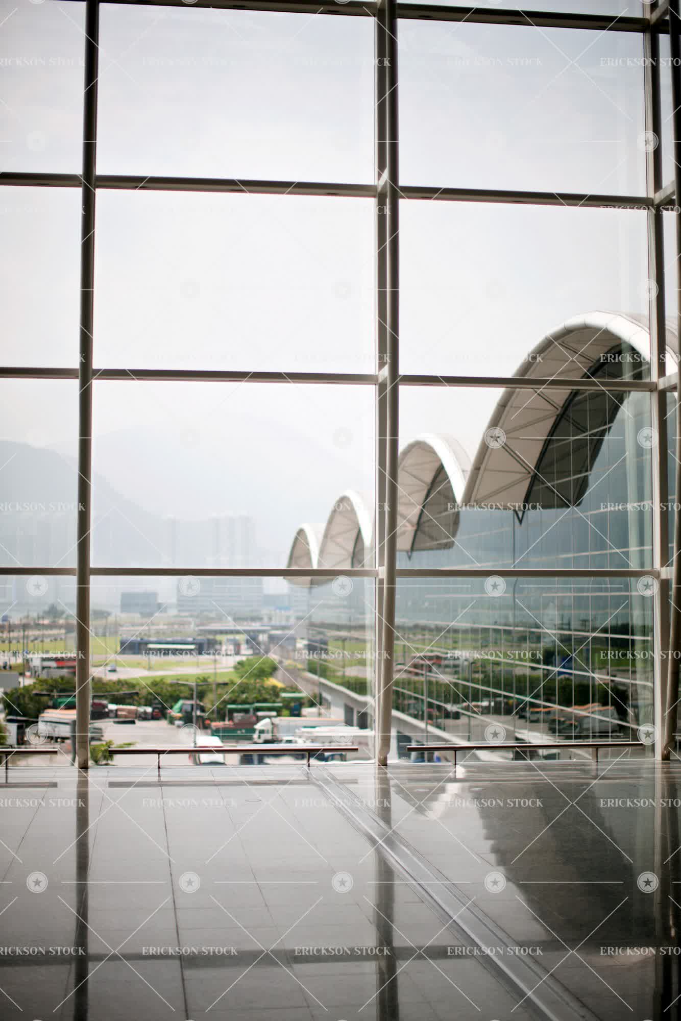 View over airport buildings.