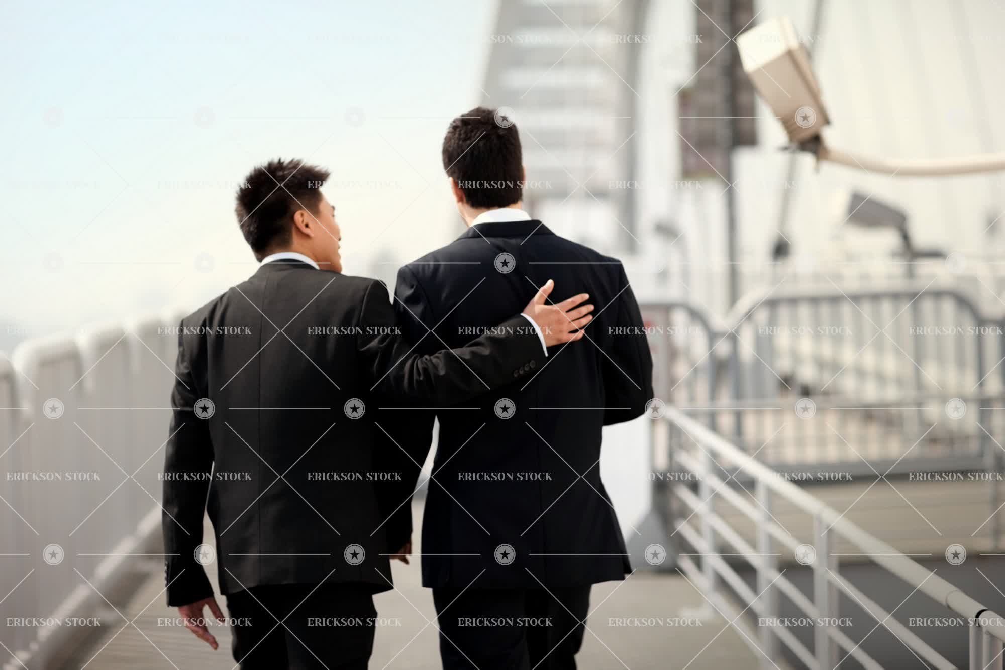 Tags adult, arm around, asian, assist, associate, back, back view, bridge, building, business, business man, care, caucasian, city, cityscape, colleague, comfort, connect, console, conversation, copy space, day, executive, executives, footbridge, footbridges, high rise, high rises, horizontal, male, man, mid adult, negative space, next to, outdoor, outdoors, outside, partner, pedestrian bridge, pedestrian bridges, people, person, rear, rear view, reassure, reassures, reassuring, selective focus, side by side, skyline, skyscraper, skyscrapers, speaking, suit, Support, supportive, talking, three quarter length, together, togetherness, two people, urban, urban scene, well-dressed, young adult