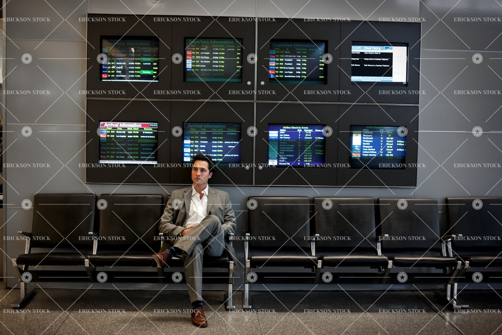 Tags adult, airport, arrival, arrival departure board, arrive, brunette, business, business man, business travel, caucasian, chair, city, commute, contemplate, depart, executive, executives, full length, horizontal, in a row, indoor, indoors, info, Information, information sign, information signs, inside, journey, journeys, leaving, male, man, mature adult, mid adult, nervous, nervousness, on the move, one person, patience, patient, pensive, people, person, selective focus, sit, sitting, suit, thinking, thoughtful, time, times, transport, Transportation, travel, travelling, urban, wait, waiting, well-dressed, young adult