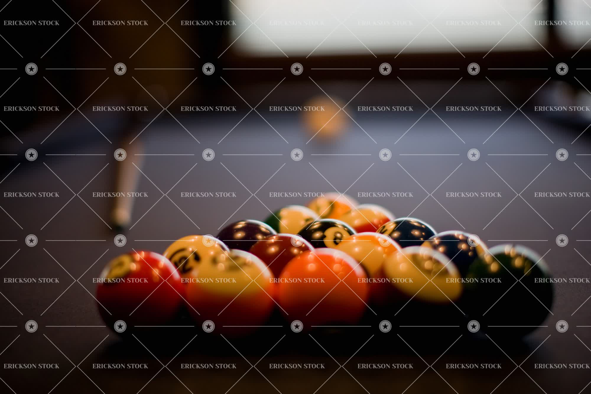 Tags arrange, ball, cue, equipment, game, game of pool, games, horizontal, indoor, indoors, inside, leisure, leisure activities, leisure activity, nobody, pool, pool ball, pool balls, pool game, pool hall, pool halls, pool table, pool tables, recreation, recreational pursuit, recreational pursuits, selective focus, snooker, sport, Sports, stick, table