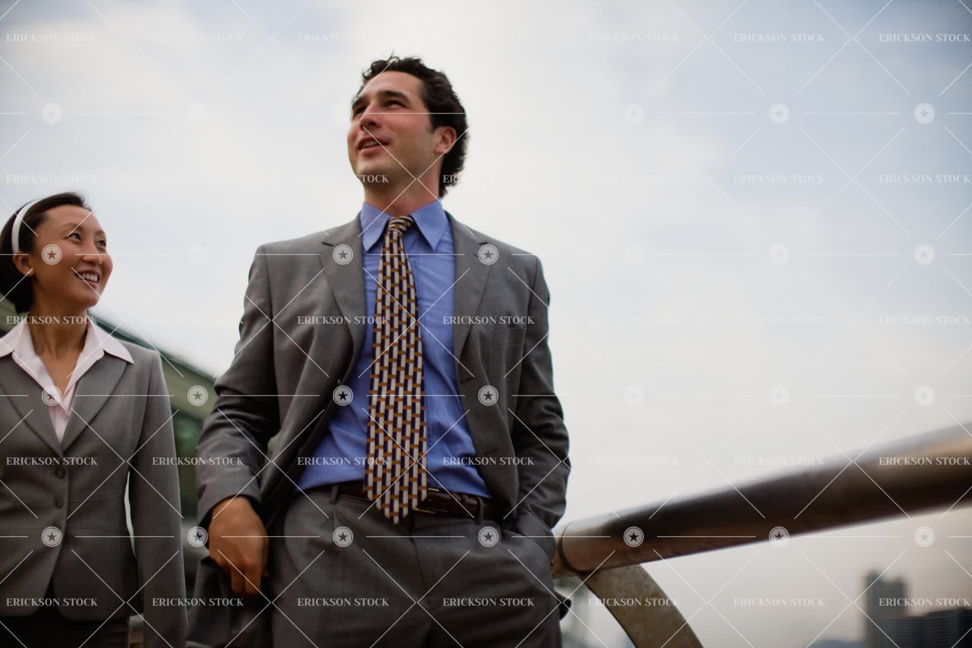 Tags adult, asian, business, business man, business woman, caucasian, colleague, companion, confident, copy space, copy space right, day, deal, female, formal wear, formalwear, friend, friends, friendship, full suit, full suits, going for a stroll, going for a walk, gray, grey, grin, grinning, happiness, happy, horizontal, low angle, low angle view, male, man, matching, mid adult, moving down, moving downwards, negative space, negative space right, on the move, outdoor, outdoors, outside, rail, smile, smiles, smiling, stroll, Strolling, subject left, success, suit, suits, three quarter length, tie, together, togetherness, walk, Walking, well-dressed, woman, young adult
