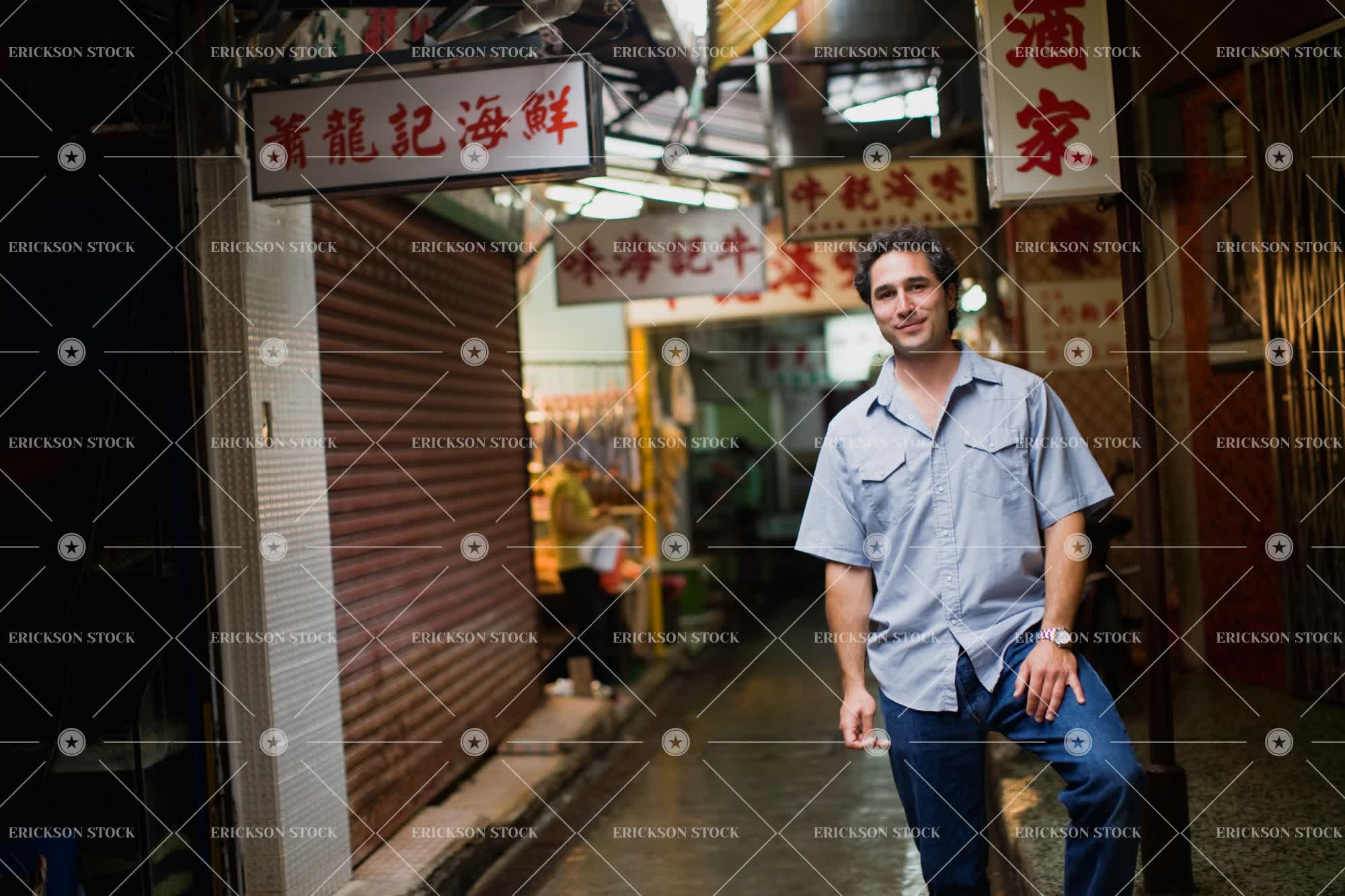 Tags adult, alley, asia, blue, blue jeans, casual clothes, caucasian, chinese script, city, closing, day, denim, Eye contact, focus on foreground, foreigner, hanzi, happiness, happy, horizontal, jeans, language, look at camera, looking at camera, male, males only, man, markets, mature adult, men only, mid adult, non-western script, one person, only males, only men, outdoor, outdoors, outside, passageway, passageways, people, person, shop, shops, signs, smile, smiles, smiling, stand, standing, store, stores, three quarter length, tourist, tourists, urban, urban scene, Urban scenes, writing, young adult