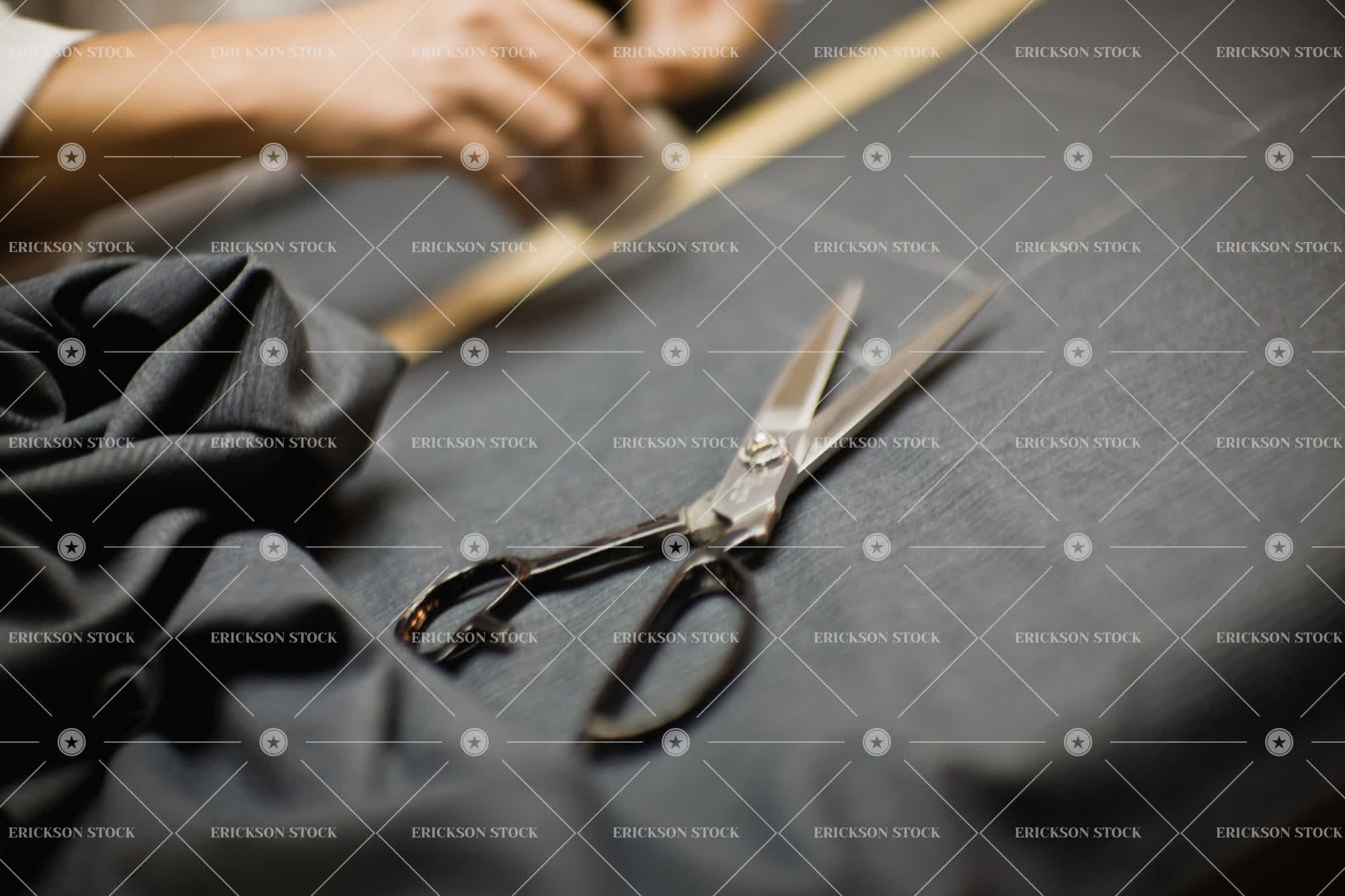 Tags alteration, body part, chalk, cloth, copy space, copy space right, create, cropped, day, dressmaker, expertise, fabric, fabrics, fashion, fashion industry, hand, Hands, horizontal, human hand, human hands, indoor, indoors, inside, mark, marking, marks, material, negative space, negative space right, one person, people, person, scissors, selective focus, suit, suit making, tailor, tailoring, tailors, tailors chalk, tape measure, tape measures, textile, textiles, unrecognizable people, unrecognizable person