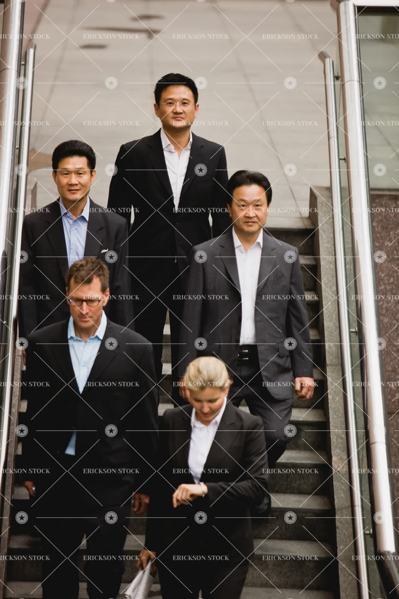 Tags architectural exterior, asian, building, business, business man, business woman, busy, caucasian, china, city, colleague, day, downstairs, exterior, Eye contact, female, formal wear, formalwear, front view, full suit, full suits, group, high angle, high angle view, late, look at camera, looking at camera, male, man, mature adult, meeting, mid adult, moving down, moving downwards, outdoor, outdoors, outside, people, small group of people, smile, smiles, smiling, stair, staircase, staircases, stairs, step, steps, suit, suits, team, three quarter length, urban, urban scene, Urban scenes, vertical, walk, Walking, woman