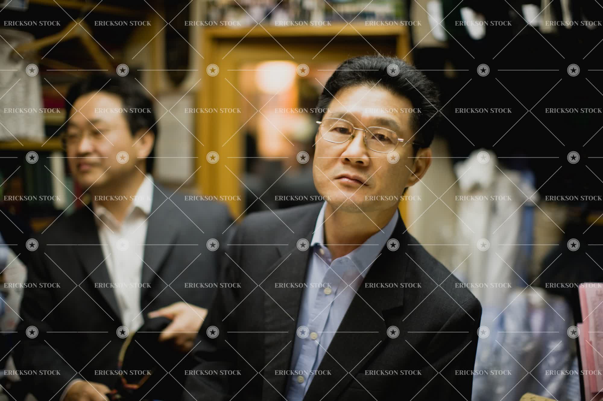 Tags adult, alteration, asian, business, business man, cloth, customer, day, doorway, dressmaker, Eye contact, eyeglasses, fashion, fashion industry, formal wear, formalwear, full suit, full suits, glasses, half length, horizontal, indoor, indoors, inside, look at camera, looking at camera, male, males only, man, mature adult, men only, mid adult, only males, only men, people, portraiture, selective focus, serious, seriously, shop, shops, spectacles, stand, standing, store, stores, suit, suit maker, suit making, suits, tailor, tailors, two people, waist up, well-dressed