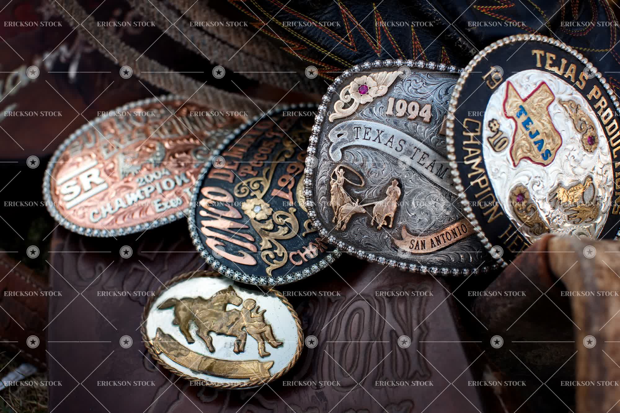 Tags achievement, american, americana, assortment, award, buckle, close up, different, fashion, fashionable, group, groups, horizontal, indoor, indoors, inside, leather, memories, memory, nobody, nostalgia, nostalgic, selective focus, several, small group of objects, success, successful, text, variation, varied, variety, western script, western text, writing