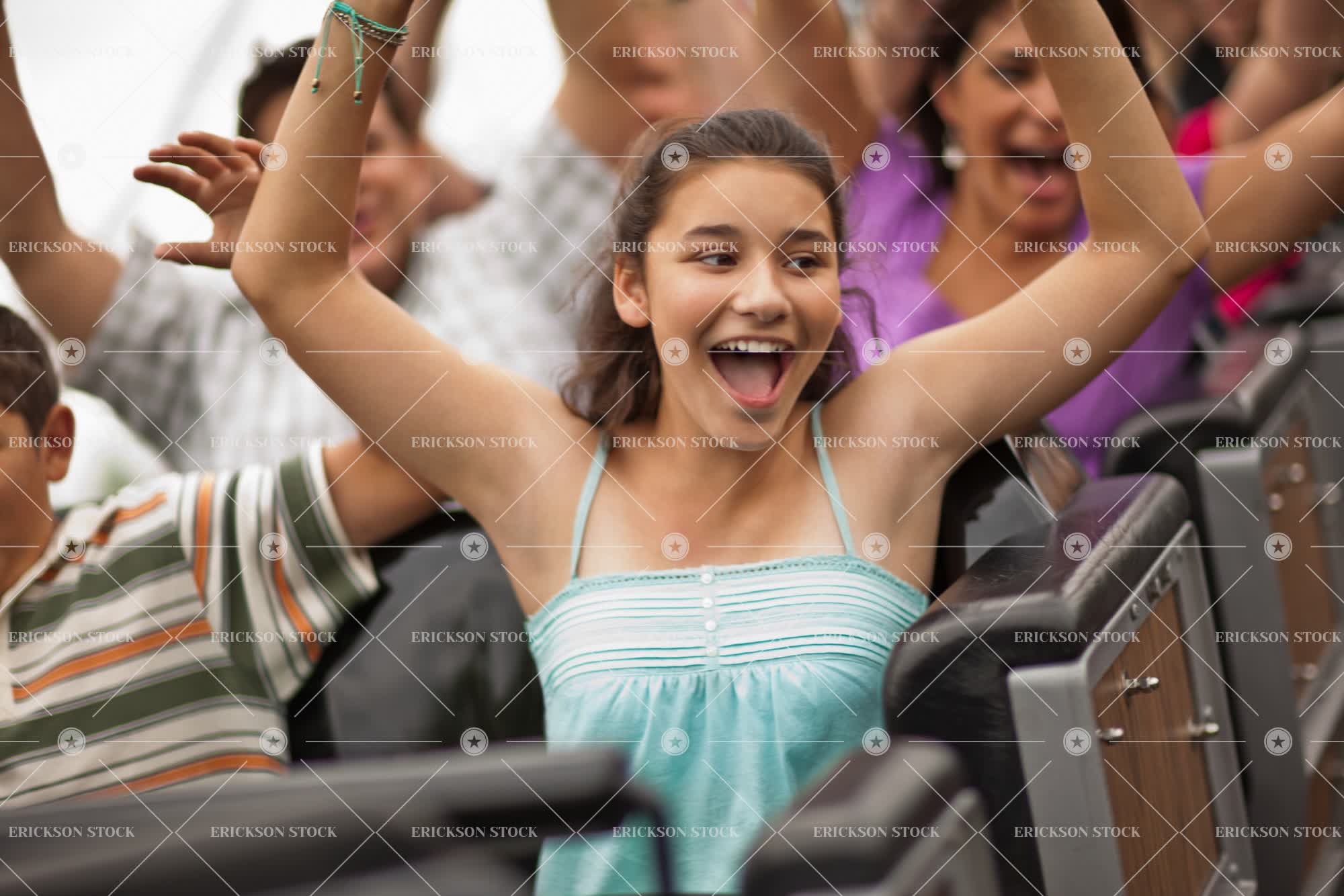 Tags adult, amusement park, amusement park ride, arm raised, brunette, casual clothes, cheerful, child, day, delight, enjoyment, female, Fun, fun park, fun parks, girl, girls, group, hand raised, hands raised, having fun, horizontal, joy, joyful, kid, kids, latin american, leisure, mature adult, mid adult, outdoor, outdoors, outside, people, person, pre-adolescent, pre-adolescents, Pre-teen, pre-teens, preteen, preteens, recreation, ride, rides, roller coaster, roller coasters, rollercoaster, rollercoasters, selective focus, small group of people, smile, smiling, teenage girl, teenager, tourist destination, tourist destinations, travel, travel destination, travel destinations, tween, woman