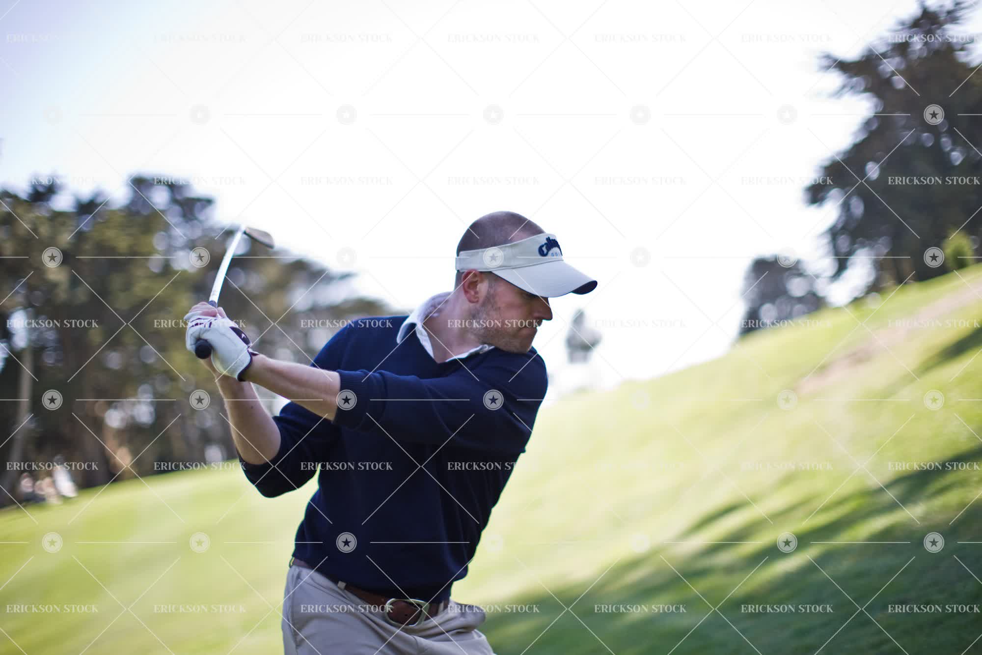 Tags adult, agriculture, canted angle, casual clothes, caucasian, club, day, face obscured, facial hair, focus on foreground, golf, golf club, golf clubs, golf course, golf courses, golf player, golf players, golfer, golfers, greens, horizontal, leisure, leisure activities, leisure activity, male, man, mid adult, natural, nature, oblique angle, obscured face, one person, outdoor, outdoors, outside, people, person, play, Playing, playing golf, recreation, recreational pursuit, recreational pursuits, sport, Sports, sportsman, sportsmen, stubble, Swing, swinging, three quarter length, tilt, tilted angle, Tree, trees, visor, young adult