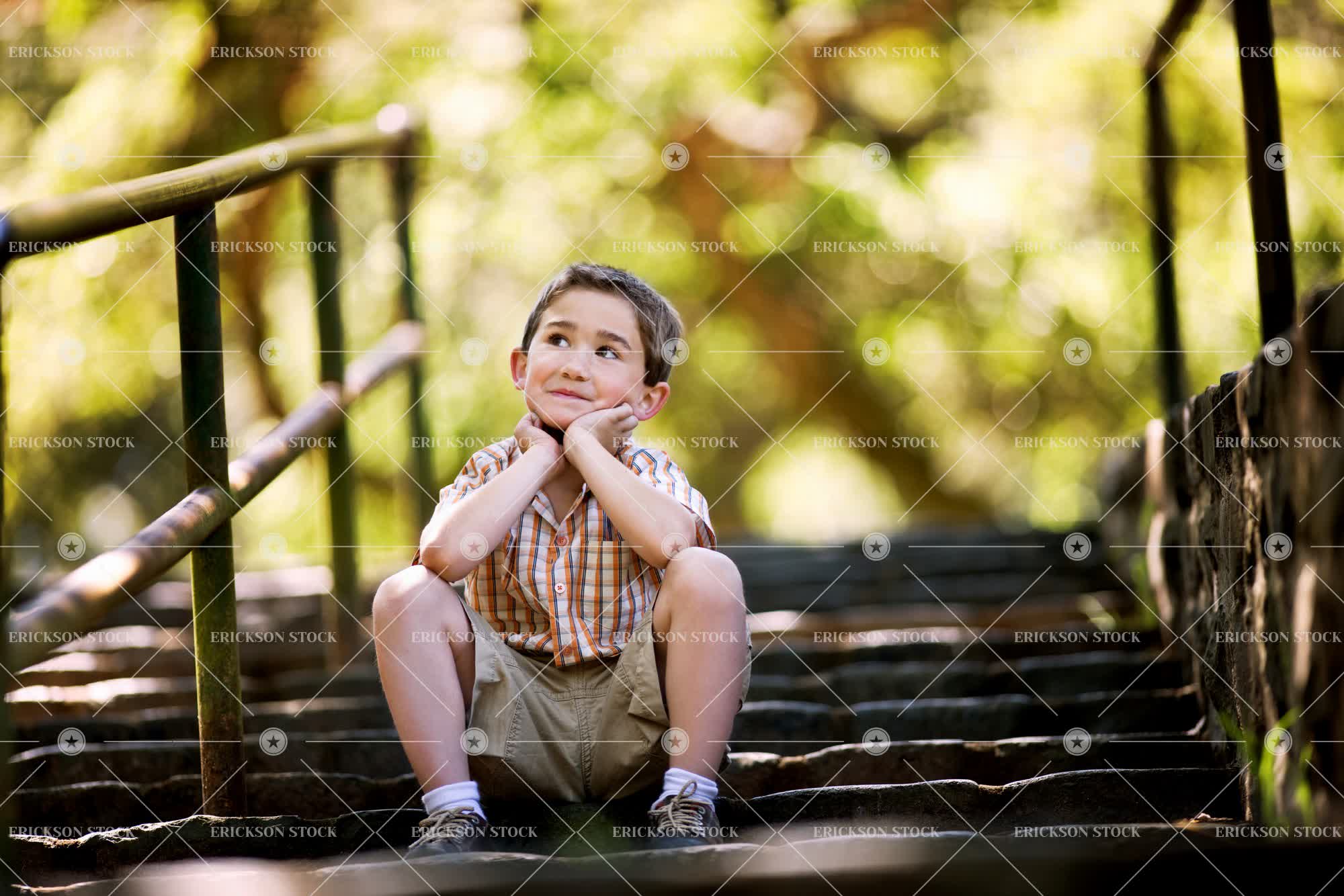 Tags adorable, boy, caucasian, cheerful, child, contemplate, copy space, country, countryside, Cute, day, delight, elementary age, enjoyment, full length, Fun, happiness, happy, having fun, horizontal, joy, joyful, kid, kids, leisure, leisure activities, leisure activity, look up, looking up, low angle, low angle view, male, negative space, non-urban, one person, outdoor, outdoors, outside, pensive, people, person, recreation, recreational pursuit, recreational pursuits, rural, rural life, selective focus, Shorts, sit, sitting, smile, smiling, staircase, stairs, stairwell, stairwells, step, steps, thinking, thoughtful
