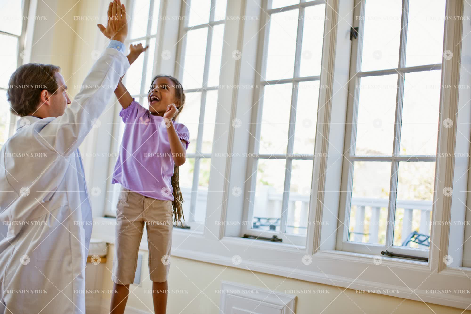 Tags adult, african american, brunette, casual clothes, caucasian, cheerful, child, delight, doctor, elementary age, enjoyment, expert, expertise, experts, female, gesture, Gesturing, girl, girls, happiness, happy, health, healthcare, high five, high fives, high fiving, home, home interior, home interiors, homes, horizontal, house, house interior, house interiors, houses, ill, illness, indoor, indoors, inside, interior, interiors, joy, joyful, kid, kids, lab coat, lab coats, long hair, male, man, mature adult, md, medical, medical practitioner, medical practitioners, medicine, mid adult, patient, patients, people, person, physician, physicians, problems, selective focus, Shorts, sick, sickness, smile, smiling, specialist, specialists, stand, standing, stands, t-shirt, t-shirts, tee shirt, tee shirts, three quarter length, two people, window, windows, young adult