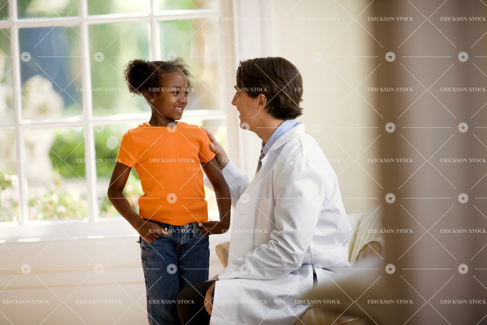 Tags adult, african american, afro, blue jeans, brunette, casual clothes, caucasian, child, curl, denim, doctor, doctor's office, elementary age, expert, expertise, experts, face to face, facing each other, female, girl, girls, hand in pocket, hand on shoulder, hands in pockets, hands on shoulders, health, healthcare, horizontal, indoor, indoors, inside, jeans, job, jobs, kid, kids, lab coat, lab coats, looking at each other, male, man, mature adult, md, medical, medical practitioner, medical practitioners, medicine, mid adult, occupation, occupations, people, person, physician, physicians, place of work, selective focus, sit, sits, sitting, specialist, specialists, t-shirt, t-shirts, tee shirt, tee shirts, two people, work, working, young adult