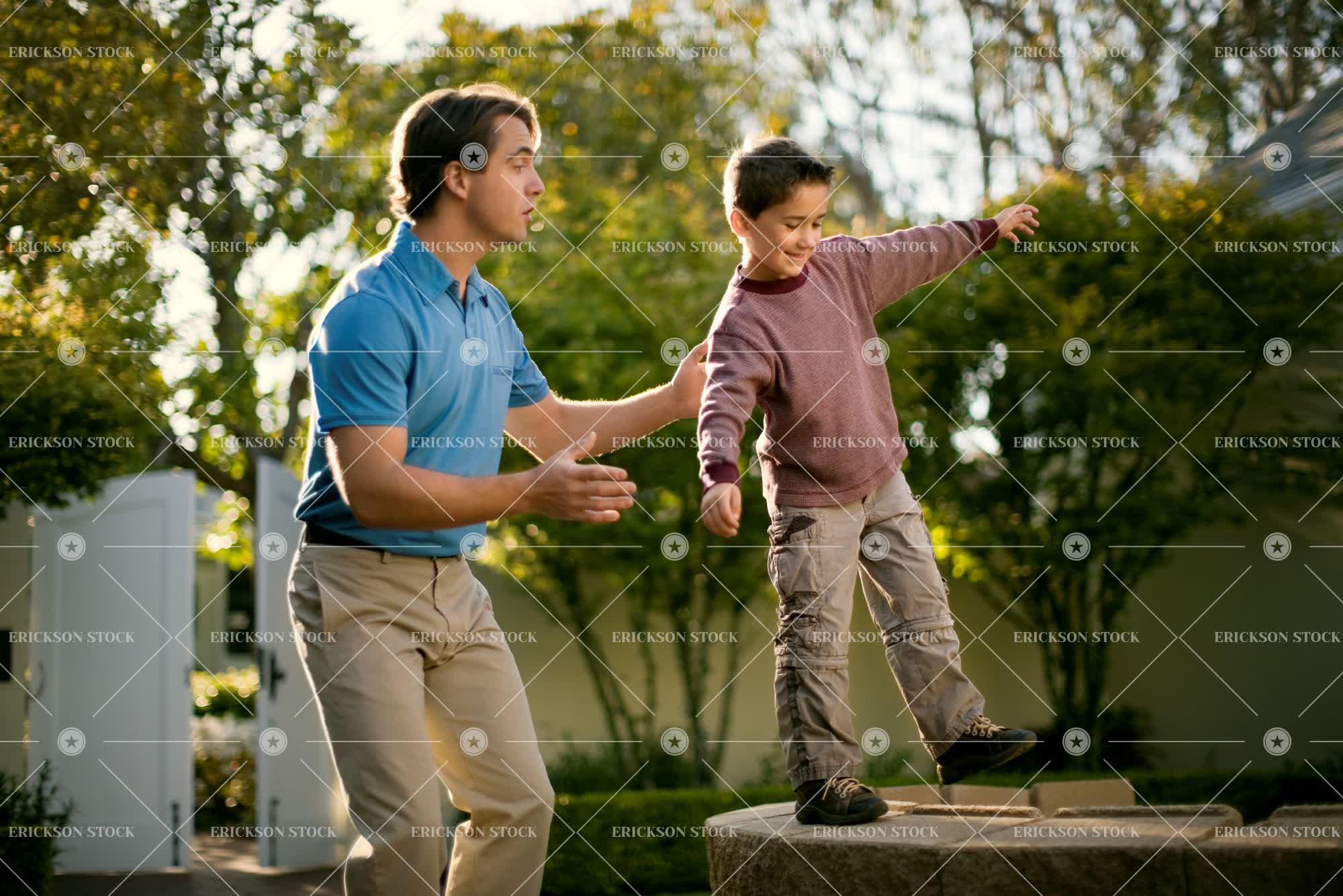 Tags adult, arm outstretched, arms open, assist, backyard, balance, bond, boy, brunette, building, casual clothes, caucasian, cheerful, child, day, delight, elementary age, enjoyment, family, father, front or back yard, frontyard, frontyards, Fun, garden, gardens, happiness, happy, having fun, help, helping, home, homes, horizontal, house, house exterior, house exteriors, household, households, houses, joy, joyful, kid, kids, leisure, leisure activities, leisure activity, male, man, mature adult, mid adult, outdoor, outdoors, outside, Pants, parent, parents, people, person, play, Playful, Playing, plays, polo shirt, polo shirts, Pride, proud, recreation, recreational pursuit, recreational pursuits, residence, residences, residential, residential district, residential districts, selective focus, smile, smiling, son, stone, stone wall, stone walls, stones, stonewall, stonewalls, Suburb, suburban, suburbia, suburbs, t-shirt, t-shirts, tee shirt, tee shirts, together, togetherness, trousers, two people, walk, Walking, walks