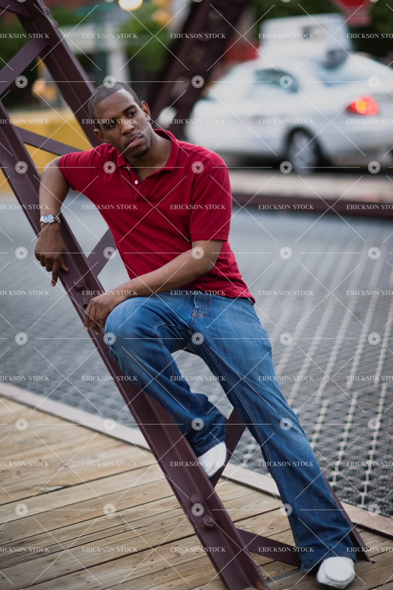 Tags adult, african american, blue jeans, bridge, car, casual clothes, city, connect, contemplate, day, denim, focus on foreground, full length, jeans, lean, leaning, leans, look away, looking away, male, man, one person, outdoor, outdoors, outside, pensive, people, person, polo shirt, polo shirts, portrait, Portraits, railing, road, roads, serious, seriously, street, streets, teenager, thinking, thoughtful, transport, Transportation, urban, urban scene, Urban scenes, vehicle, vehicles, vertical, young adult