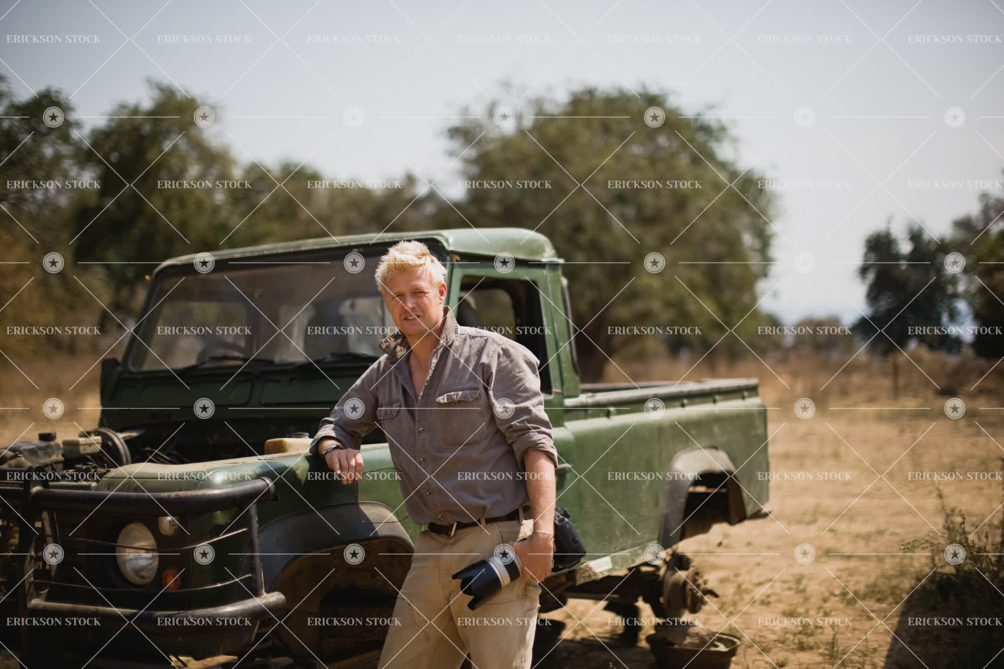 Tags adult, africa, breakdown, camera, caucasian, copy space, copy space right, damage, day, digital camera, Eye contact, focus on foreground, horizontal, jeep, jeeps, land rover, land rovers, lean, leaning, leans, look at camera, looking at camera, male, man, mature adult, mid adult, negative space, negative space right, one person, outdoor, outdoors, outside, people, person, photographer, photographers, savanna, savannah, savannahs, savannas, smile, smiles, smiling, three quarter length, transport, Transportation, travel, travel photographer, travel photographers, travelling, truck, trucks, vehicle, vehicles, wreck, wrecked, young adult