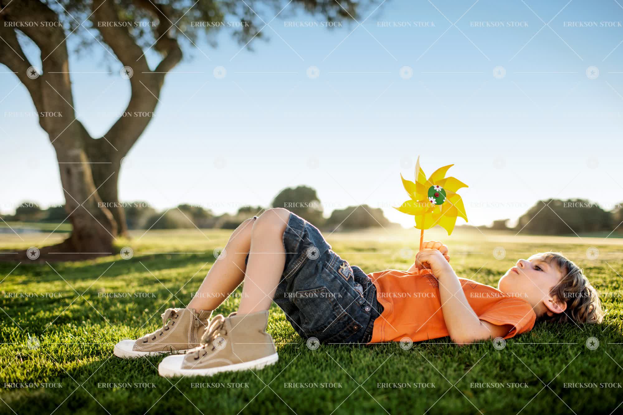 Tags backyard, boy, brunette, carefree, casual clothes, caucasian, child, contemplate, country, countryside, day, denim, denim shorts, elementary age, enjoyment, field, fields, front or back yard, front yard, front yards, frontyard, frontyards, full length, Fun, garden, gardens, grass, Grassland, grasslands, grassy, having fun, hold, holding, holds, horizontal, Imagination, imagining, kid, kids, lawn, leisure, leisure activities, leisure activity, lie down, lie on back, look up, looking up, Lying down, lying on back, male, Meadow, meadows, one person, outdoor, outdoors, outside, paddock, paddocks, Park, parks, pasture, pastures, pensive, people, person, pinwheel, pinwheels, play, Playful, Playing, plays, public park, public parks, public space, public spaces, recreation, recreational pursuit, recreational pursuits, rural, selective focus, Shorts, Side view, sneakers, sports shoes, t-shirt, t-shirts, tee shirt, tee shirts, thinking, thoughtful, Toy, toys, trainers, Tree, trees, weekend activities, weekend activity