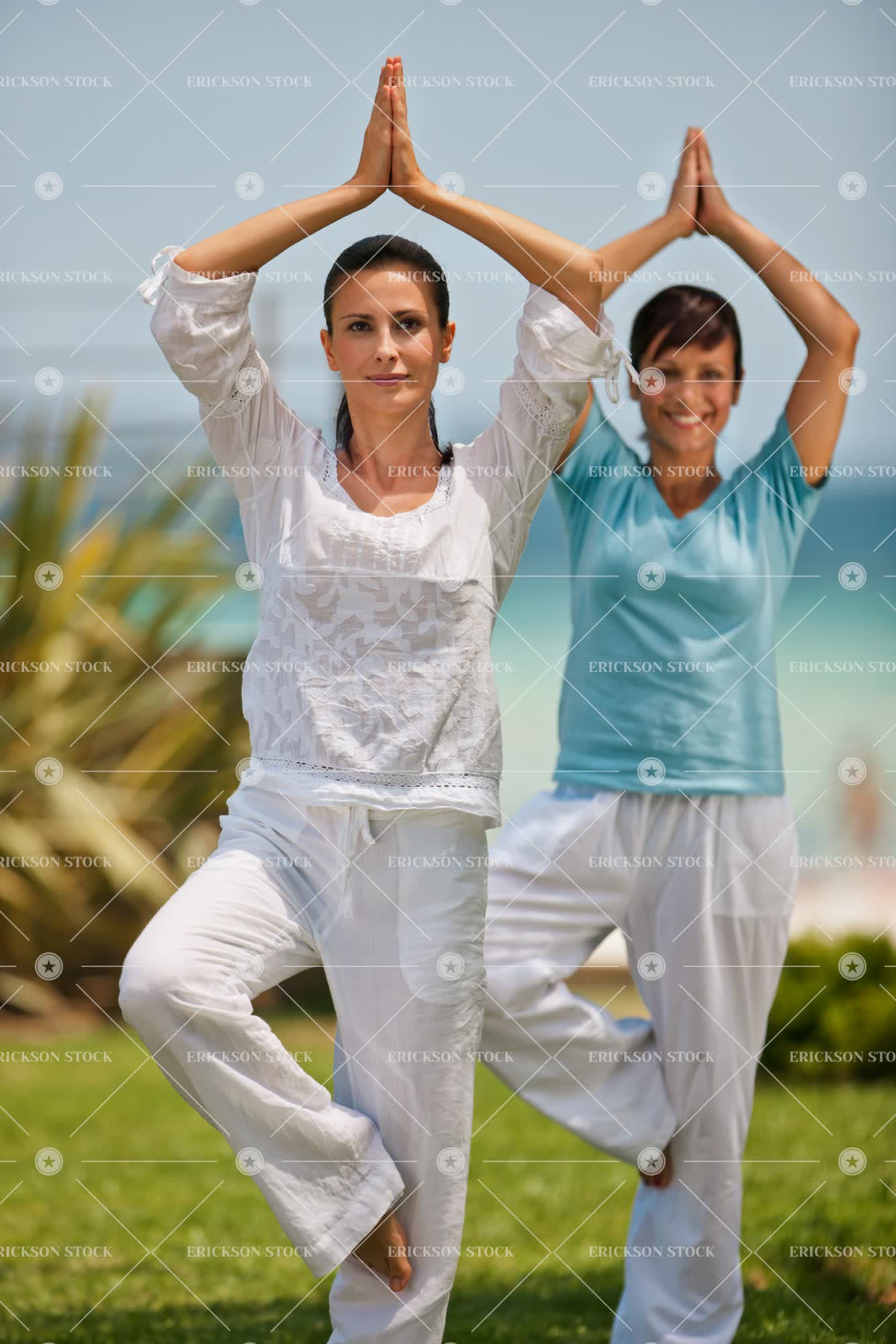 Tags adult, agile, arm raised, balance, casual clothes, caucasian, content, day, exercise, exercising, Eye contact, female, flexibility, flexible, friend, friends, friendship, garden, gardens, hand raised, hands clasped, hands raised, hands together, health, healthy, hobbies, hobby, look at camera, looking at camera, mature adult, meditating, meditation, mid adult, outdoor, outdoors, outside, Pants, Park, parks, people, person, pleased, public park, public parks, public space, public spaces, Relaxation, relaxing, selective focus, serene, serene people, serene person, serenity, stand, standing, stands, t-shirt, t-shirts, tee shirt, tee shirts, three quarter length, together, togetherness, tranquil, tranquillity, trousers, two people, vertical, vitality, wellbeing, woman, yoga, young adult, zen