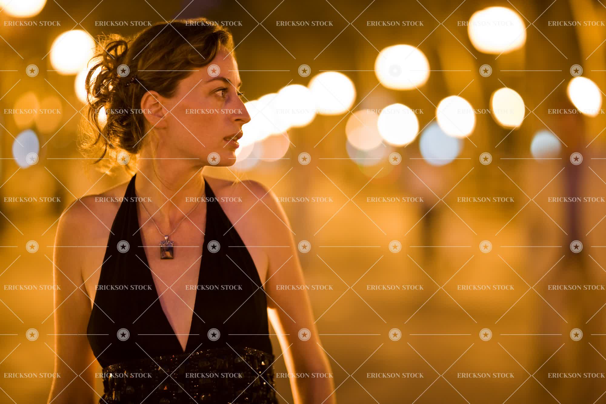 Tags adult, caucasian, city, female, focus on foreground, formal, formal wear, formalwear, front view, half length, horizontal, lamp post, lamp posts, lamppost, lampposts, look away, looking away, mid adult, night, nighttime, one person, outdoor, outdoors, outside, people, person, street lamp, street lamps, street light, street lights, streetlight, streetlights, urban, urban scene, Urban scenes, waist up, well-dressed, woman, young adult