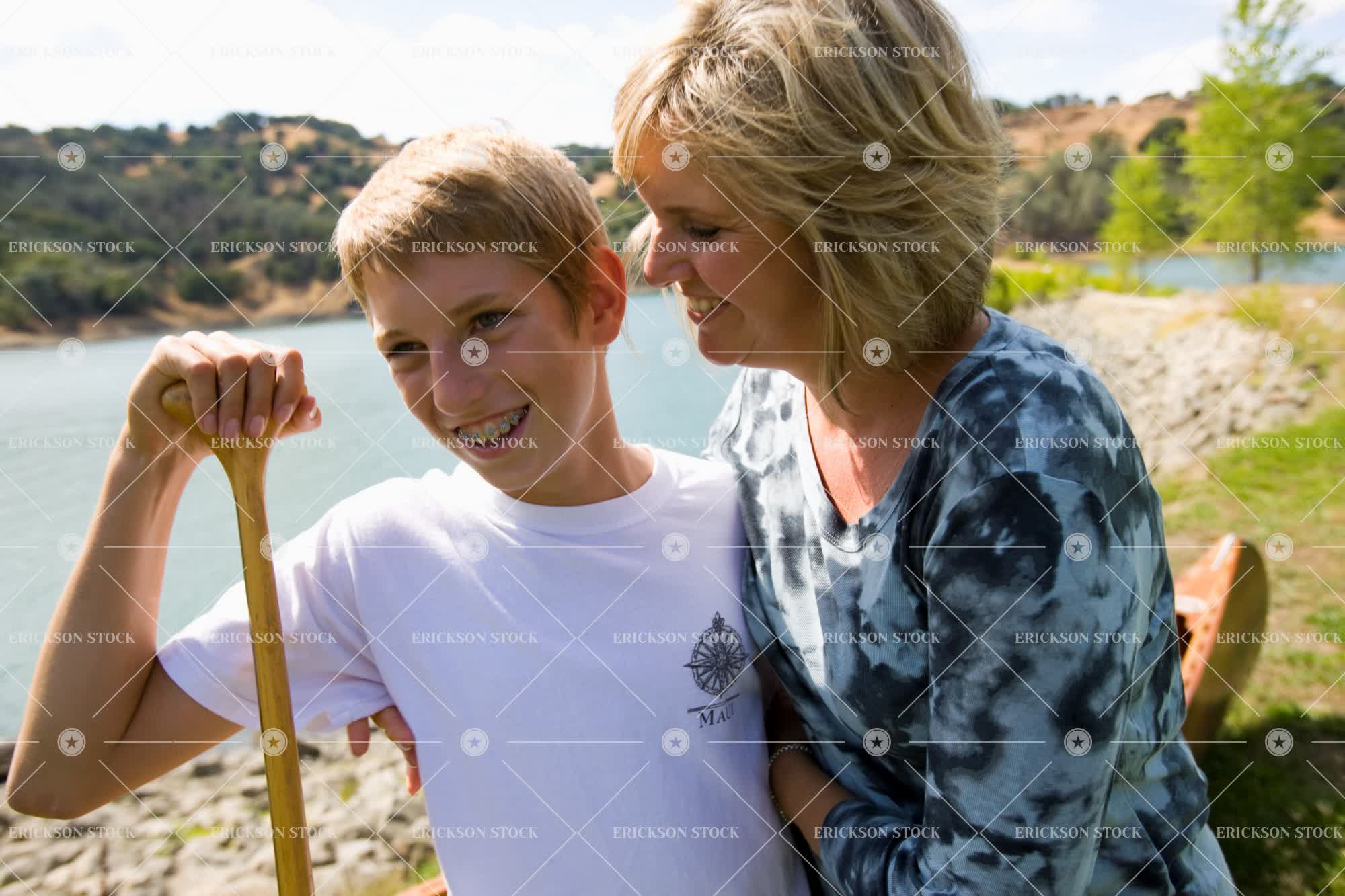 Tags adult, arm around, boat, boy, braces, canoe, casual clothes, caucasian, child, day, female, grin, grinning, Growth, half length, happiness, happy, hill, hills, horizontal, kid, kids, Lake, lakes, laughing, male, mature adult, mid adult, mom, mother, mum, mums, natural, nature, nautical vessel, nautical vessels, Oar, oars, Offspring, outdoor, outdoors, outside, paddle, paddles, people, physical geography, pond, ponds, pre-adolescent, pre-adolescents, Pre-teen, pre-teens, preteen, preteens, smile, smiles, smiling, son, stand, standing, teenage boy, teenager, together, togetherness, transport, Transportation, Tree, trees, tween, two people, waist up, water, woman
